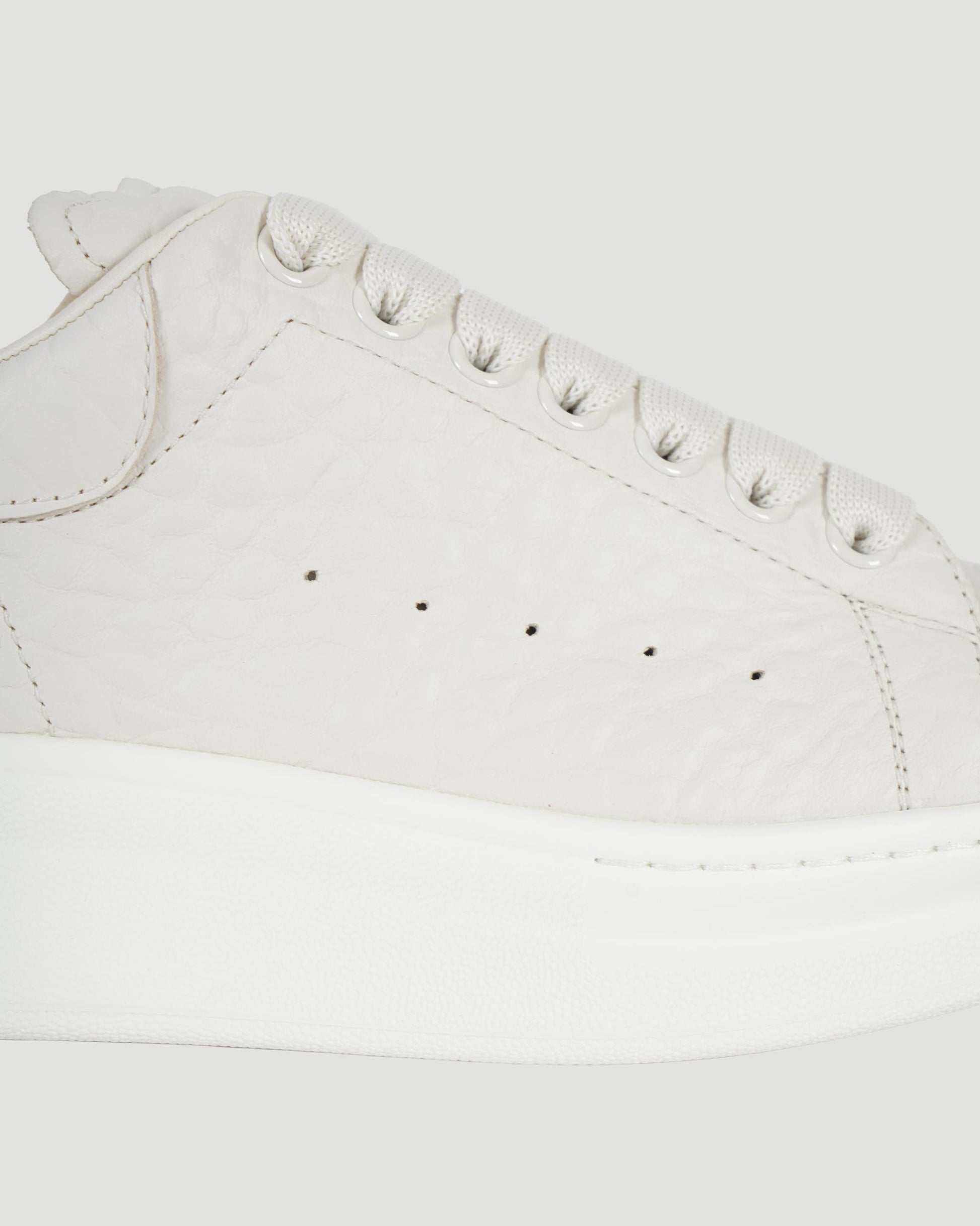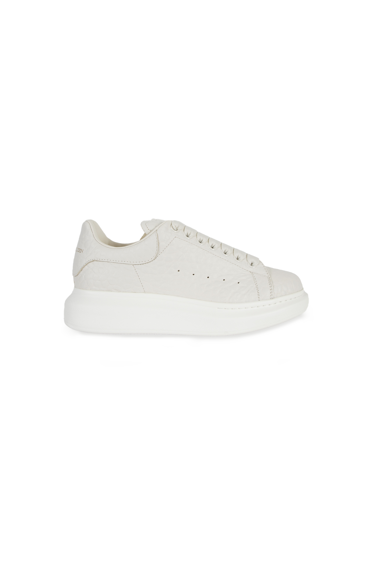 These oversized sneakers by Alexander McQueen are made from off white calf leather, accented with a tonal heel counter featuring the McQueen signature. Finished with a chunky rubber sole.