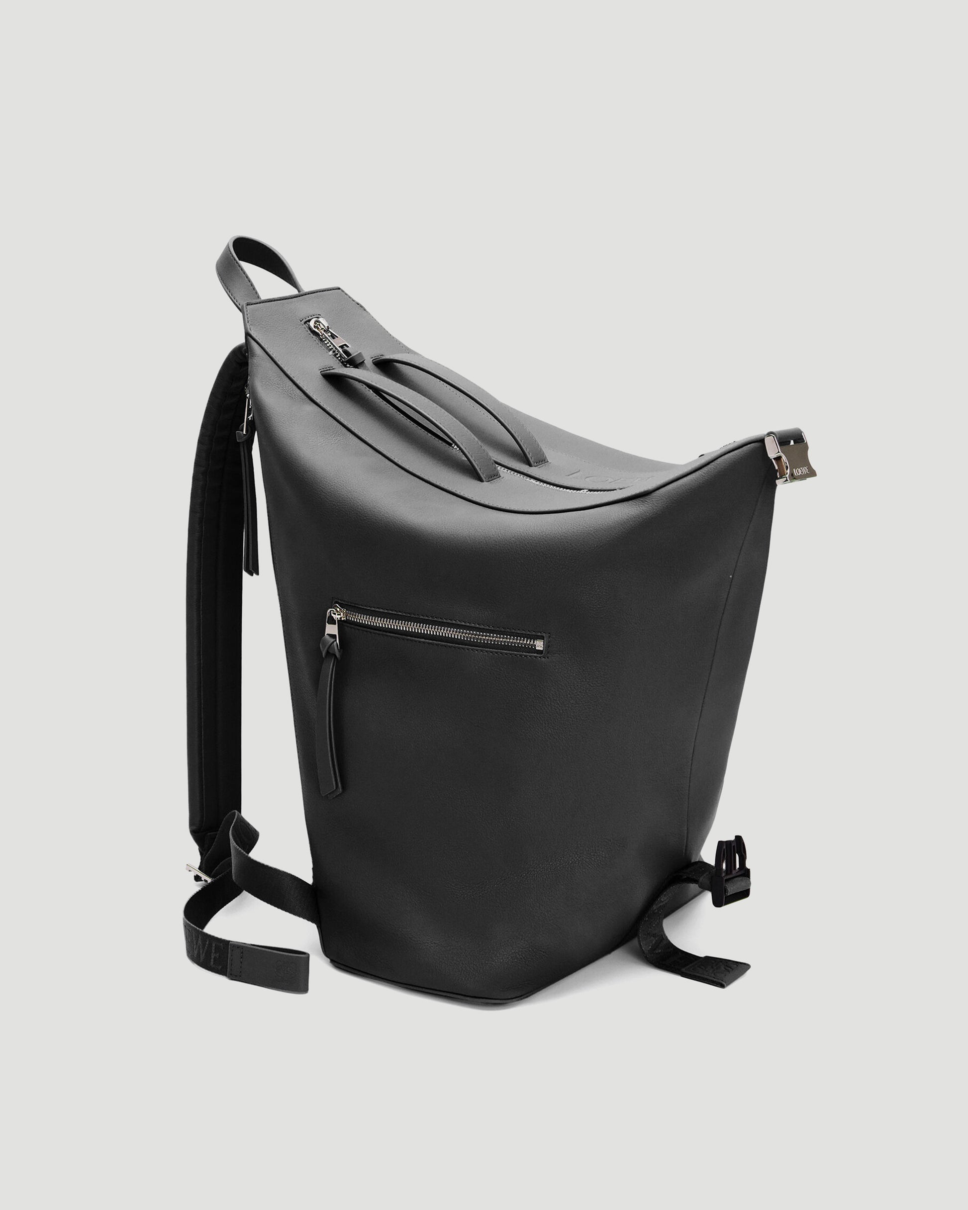 This multi-functional backpack by Loewe is made from calfskin leather in black. Design includes high-comfort padded straps, a mesh back, and a branded metal buckle that unclips to convert the bag into a double-handled holdall. Finished with an external zip flat pocket, two zip side pockets, and one large zip pocket. This version is suitable for a 13-inch laptop or tablet.