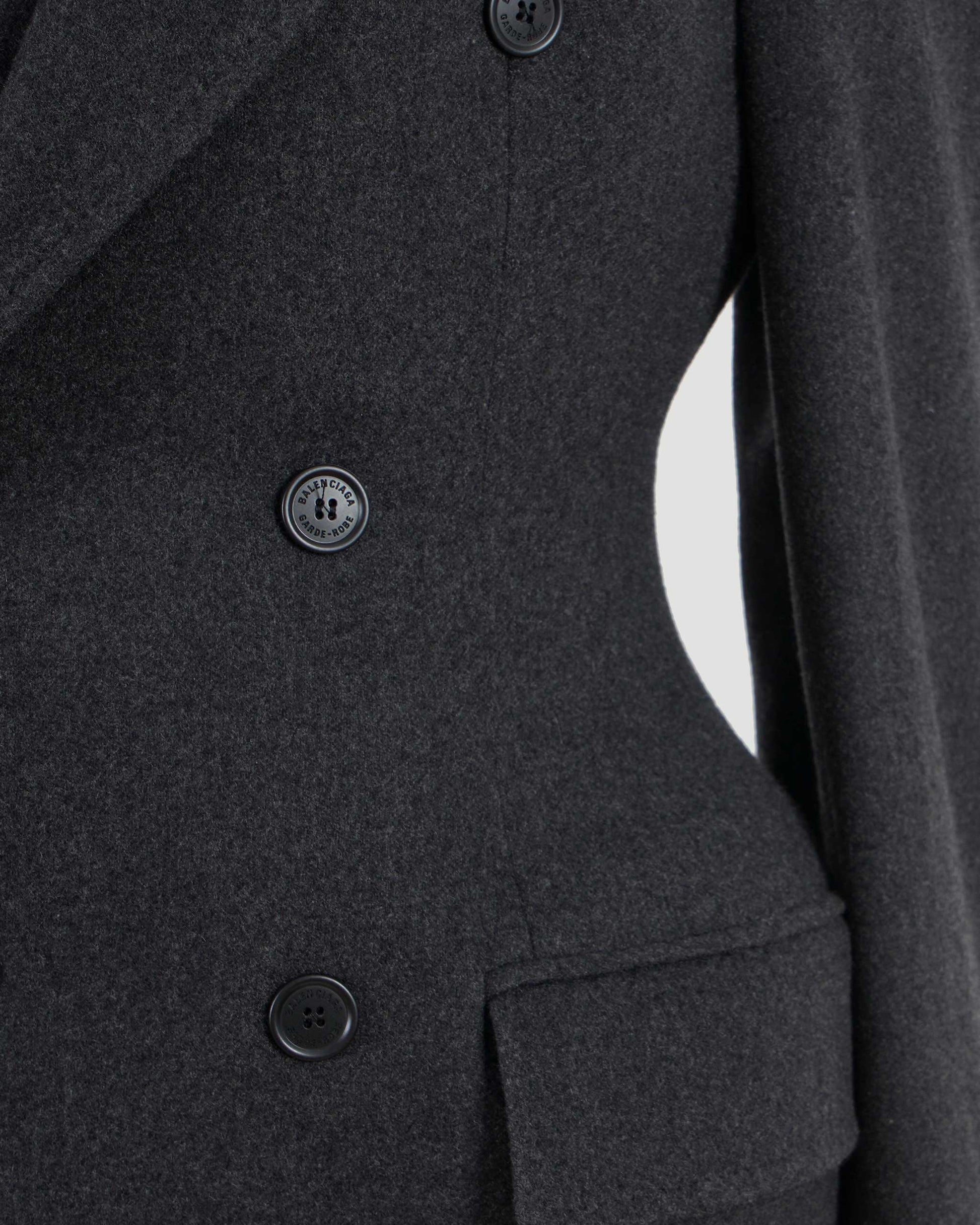 This Hourglass blazer by Balenciaga is crafted from cashemere and features a sculpted silhouette. Designed with a double-breasted button front, peaked lapels, structured shoulders, flap pockets, and a cupro-lined interior, it is made in Italy.