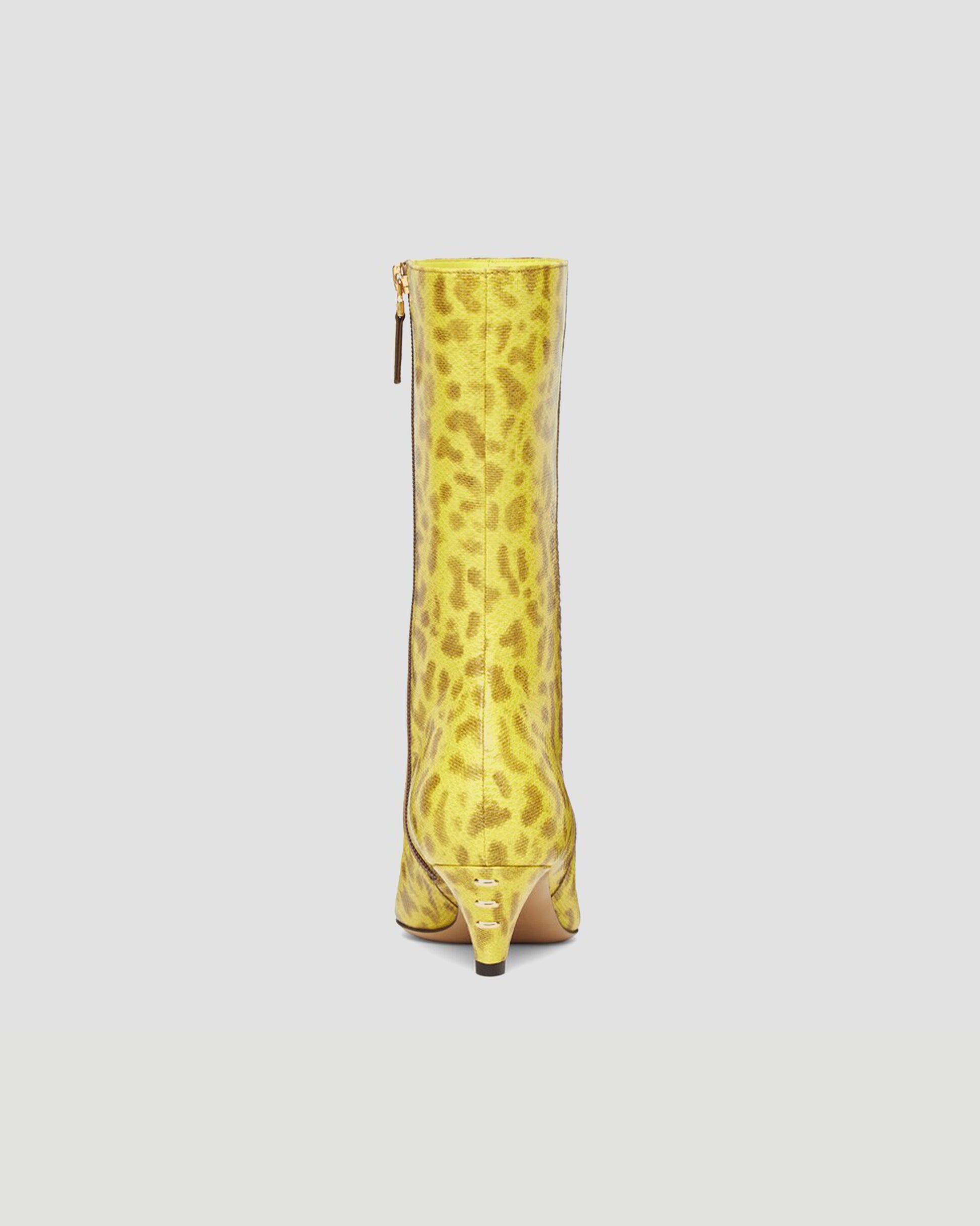 Yellow karung leather medium-heeled boots