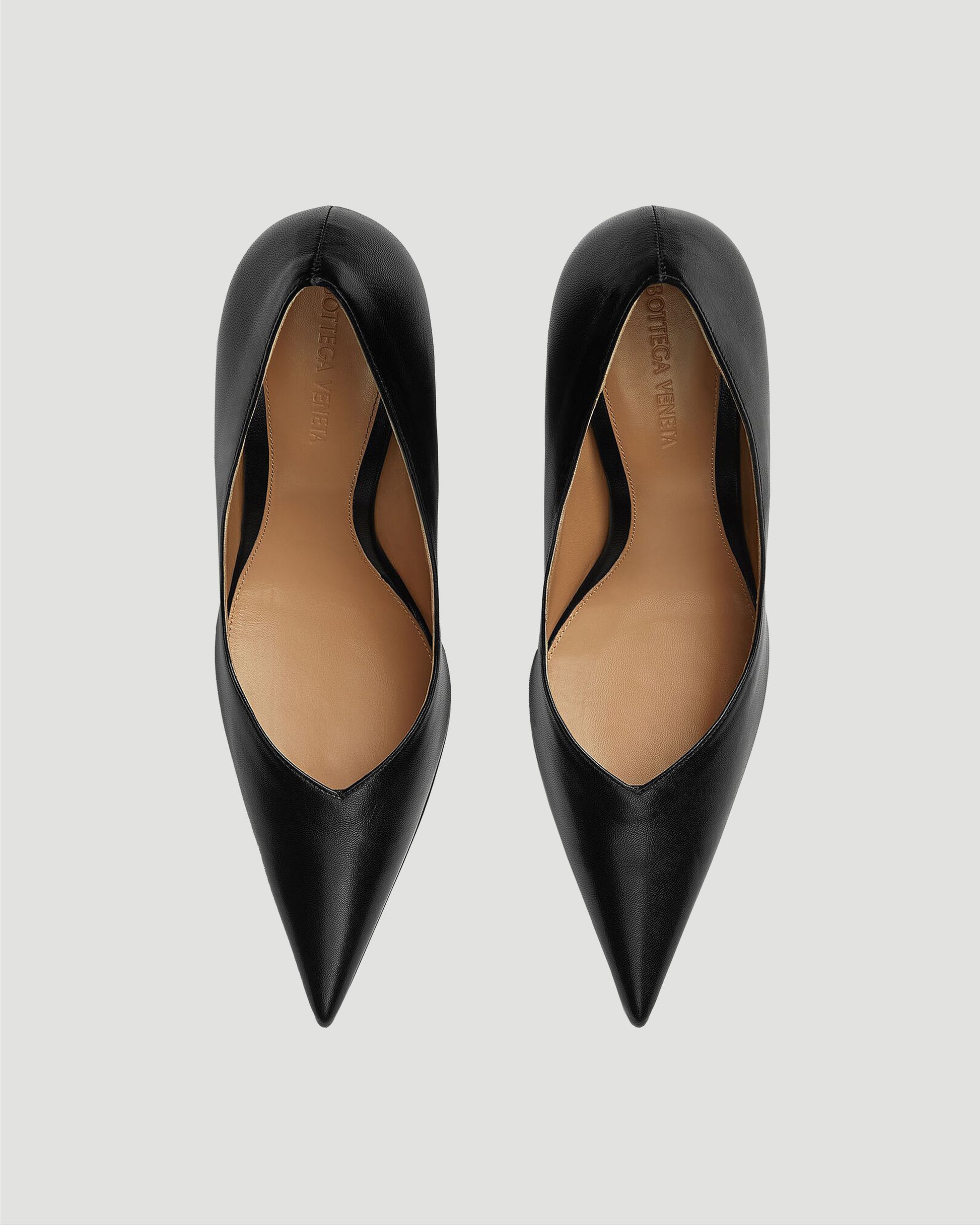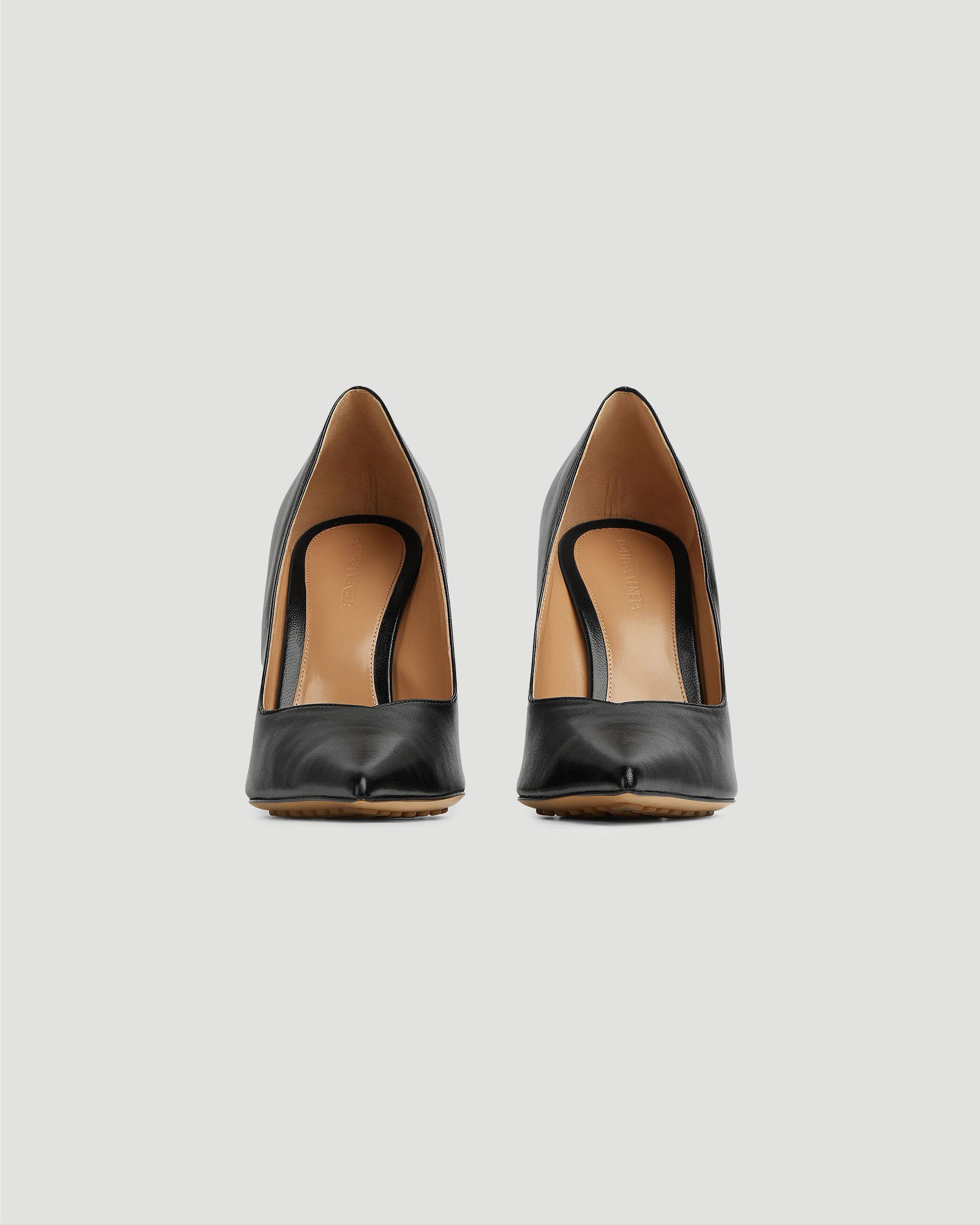 An elegant and edgy version of the classic black pump, as reimagined by Bottega Veneta. Featuring a pointed toe, unique wedge heel and rubber-injected leather outsole. The versatility of these heels allow them to be styled with a variety of looks.