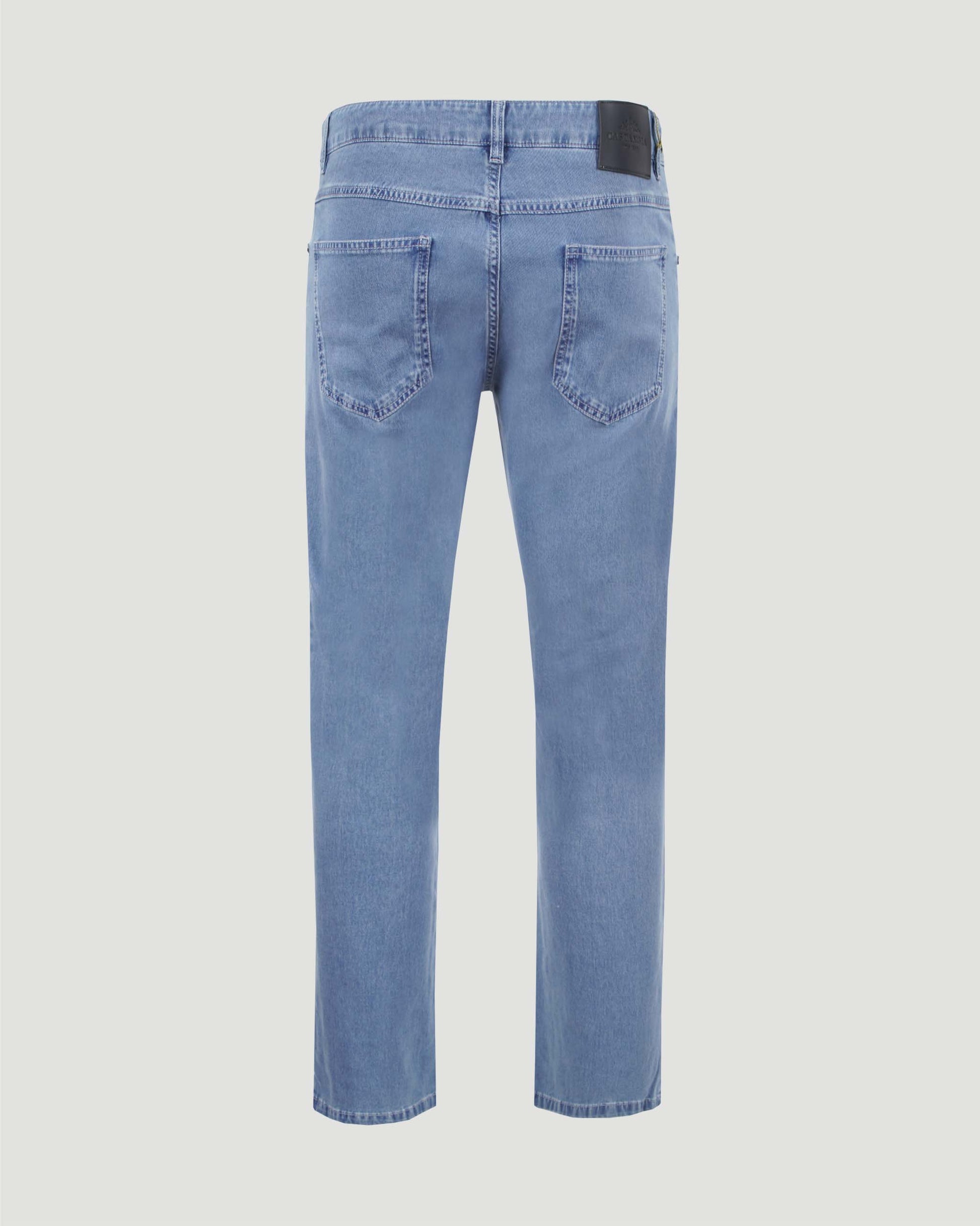 Denim jeans by Castangia, crafted from pure cotton. Designed with a classic five-pocket construction, belt loops, and button-and-zip fly fastening.