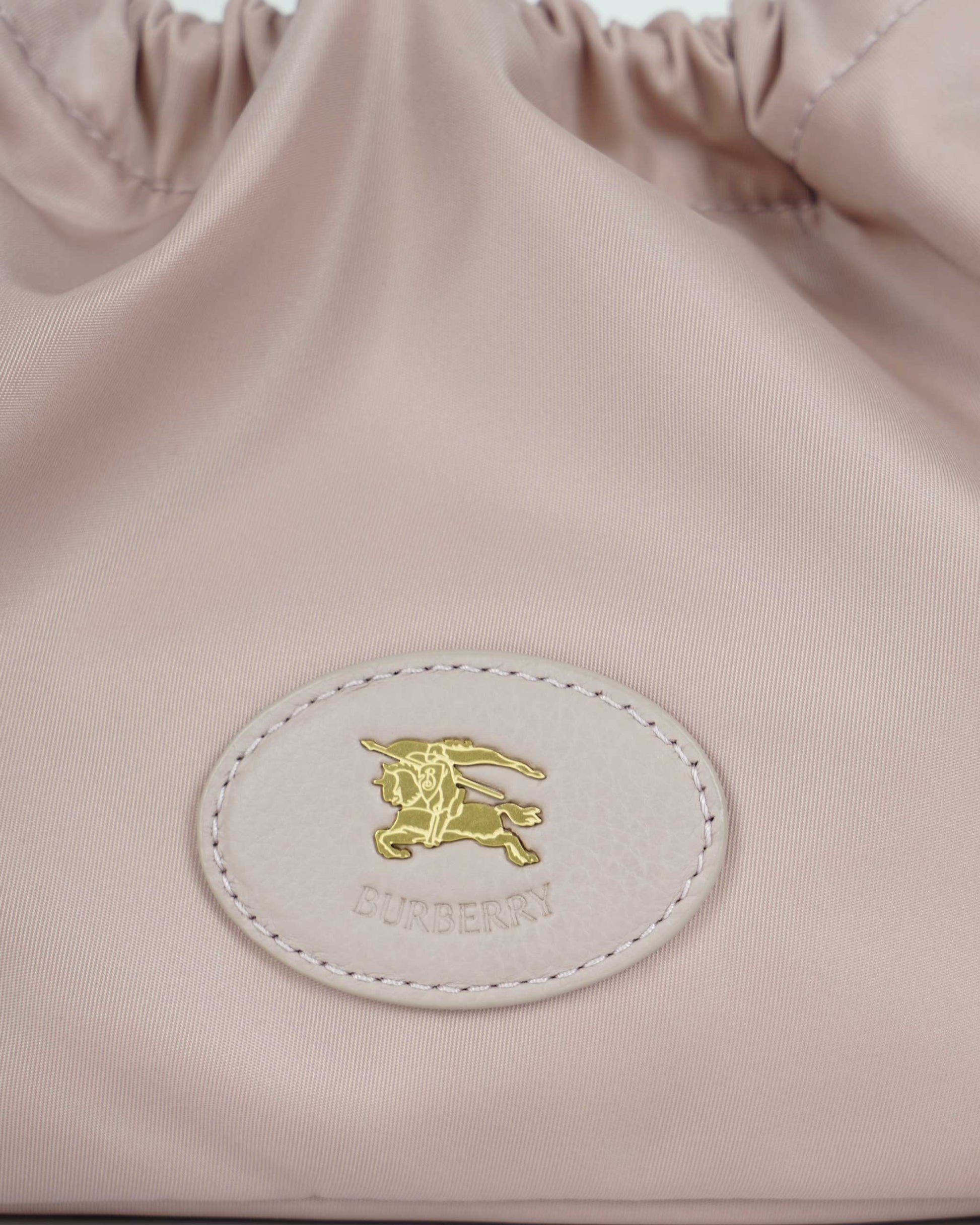 A functional and refined piece, this lightweight pouch by Burberry is crafted from durable nylon in a rose-beige hue. The minimalist design is accented with a leather patch embossed with the Knight stamp — a heritage motif dating back to the 1980s. Features include a drawcord closure and brushed metal hardware for a clean, modern finish. Ideal for everyday carry or travel essentials.