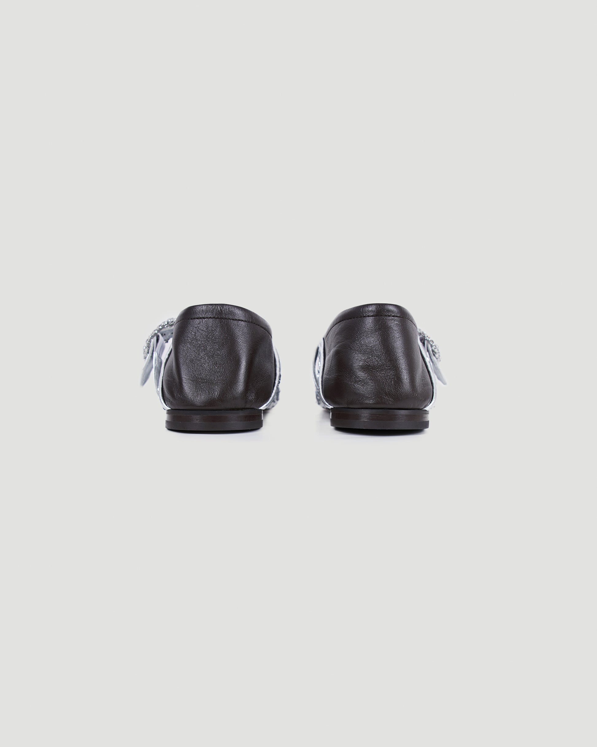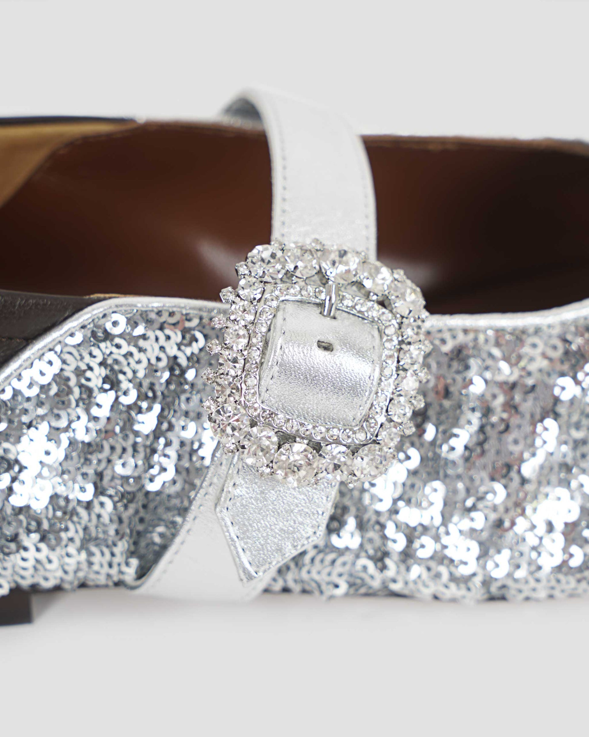 The Glide Slipper by Wales Bonner reimagines the classic ballerina silhouette with shimmering sequins for a touch of elegance. Featuring a sparkling crystal buckle and a foldable leather heel, this versatile design seamlessly transitions between styles, offering both sophistication and ease.