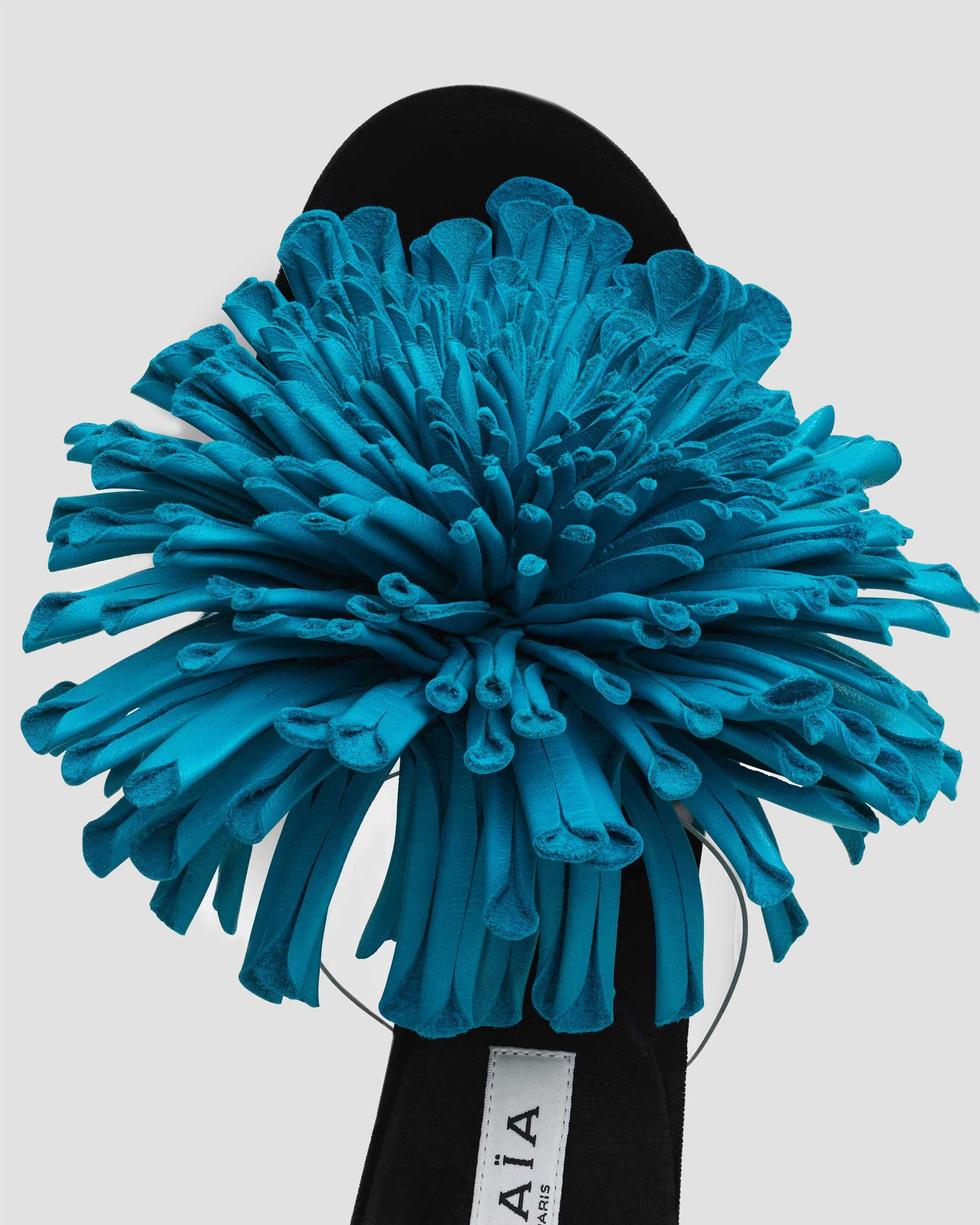 These asymmetric stiletto sandals by Alaïa are crafted from nappa lambskin leather. Featuring a large hand-assembled 3D leather flower on the right foot.