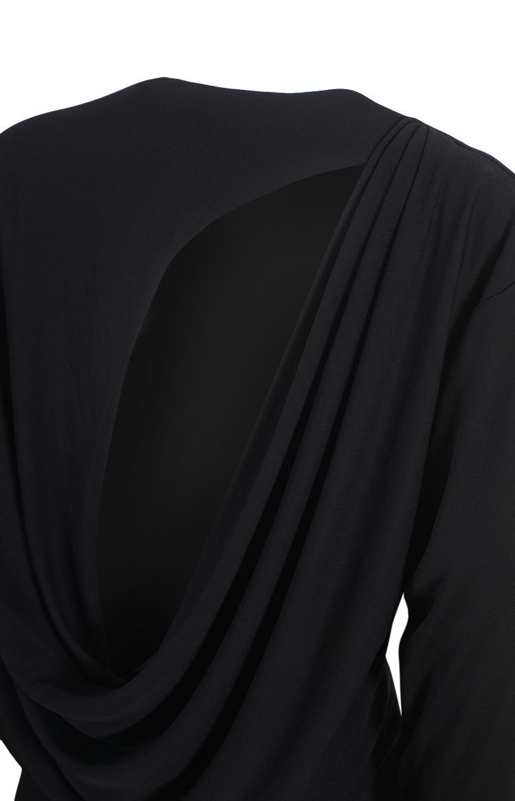 This short dress by Jacquemus is crafted from fluid viscose jersey with a boat neckline and fitted sleeves. It features round embroidery on the front, an open back cut-out, and a draped panel at the back.