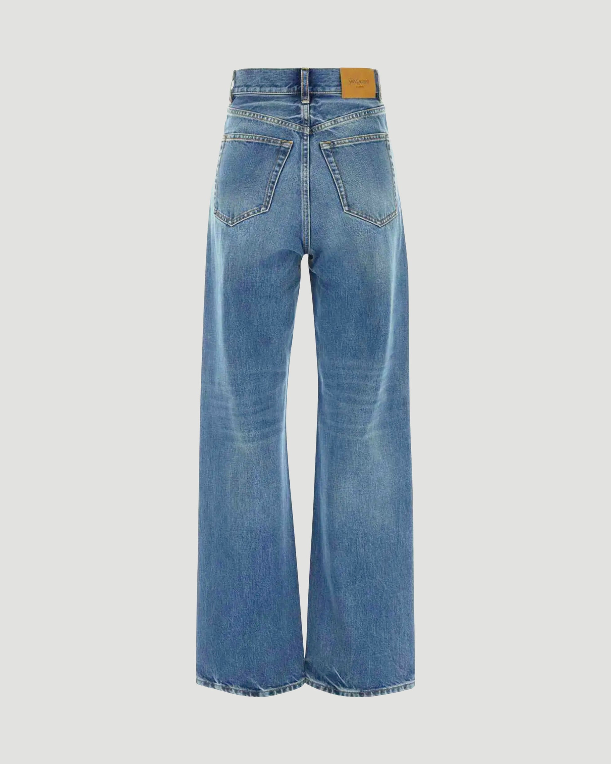 These high-waisted jeans by Saint Laurent are crafted in Italy from 100% selvedge denim. They feature a long, wide-leg fit with a V-cut waistband, button fly, and classic five-pocket construction. Finished with belt loops and an embossed Saint Laurent Paris leather jacron at the back.