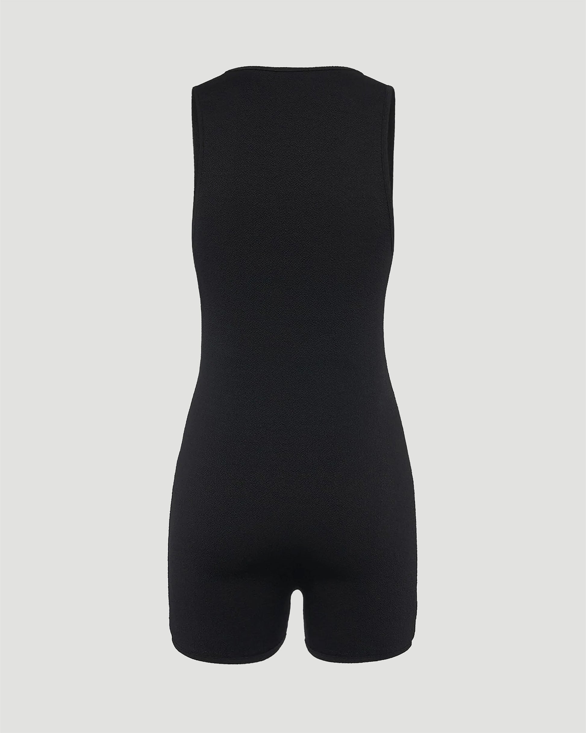 A textured crepe jumpsuit by Bottega Veneta in black. Featuring a scoop neck, a sleeveless design, and a slim fit.