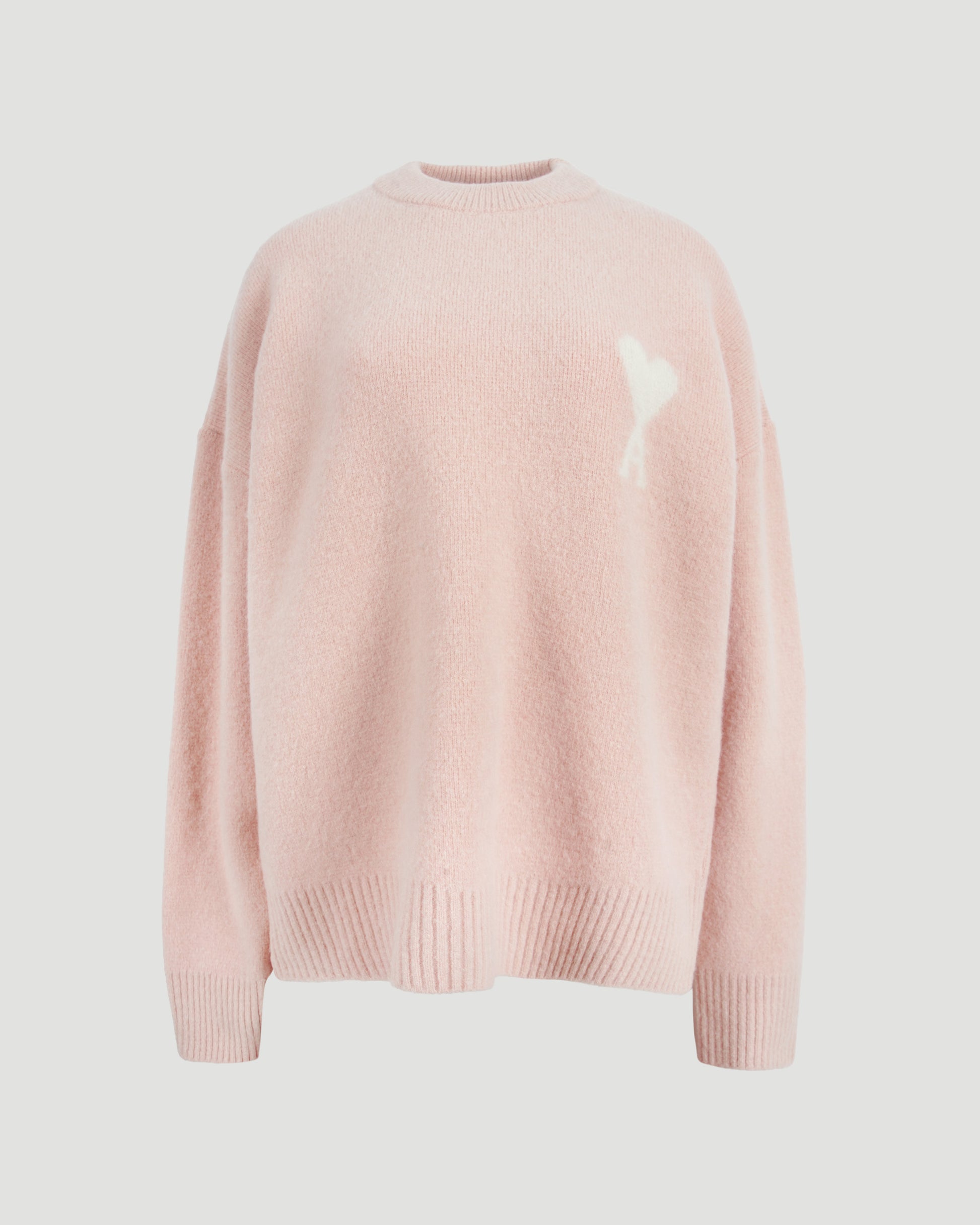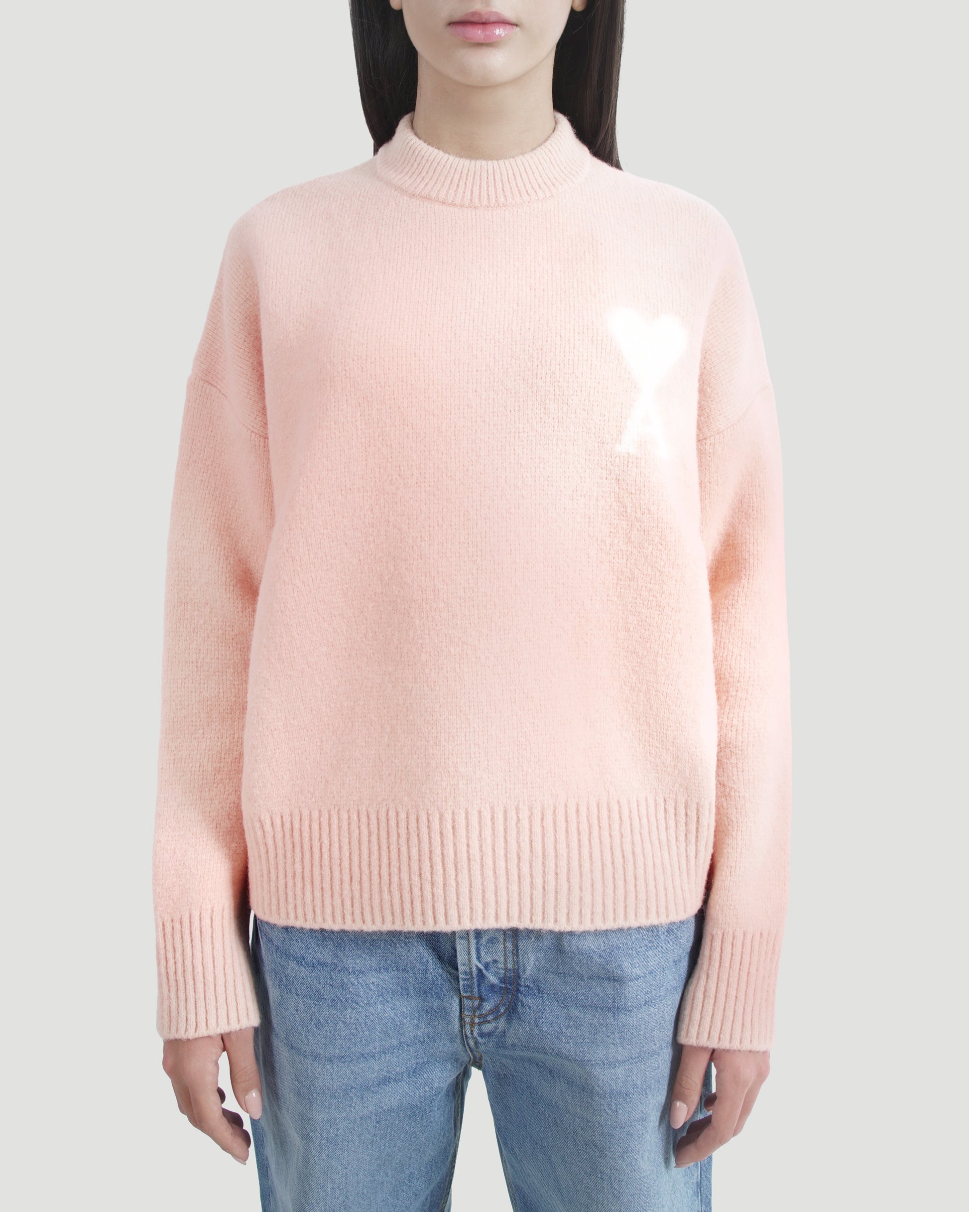 This AMI sweater in soft alpaca knit is designed with a classic crewneck. Features an intarsia-knitted Ami de Coeur on the chest and an interlock stitch finish. Cozy texture with signature detailing.