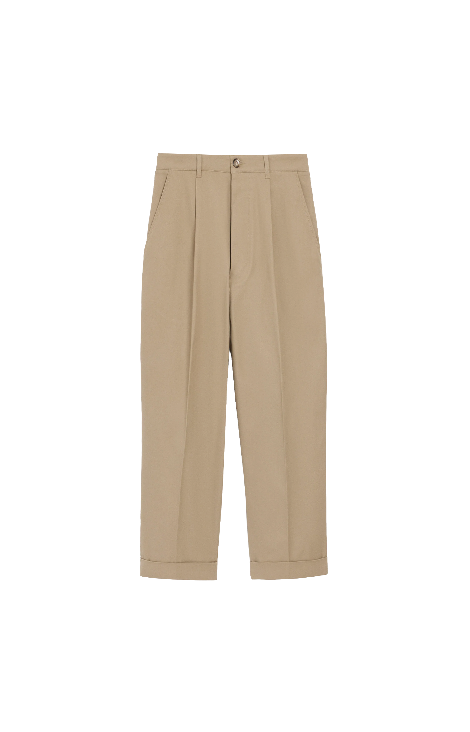 This carrot trousers by Ami Paris are crafted from cotton gabardine. They feature an oversized carrot fit, front pleats, buttoned belt and fly with horn buttons, and cuffed hems. An "ami alexandre mattiussi" paper jacron at the back completes the design.