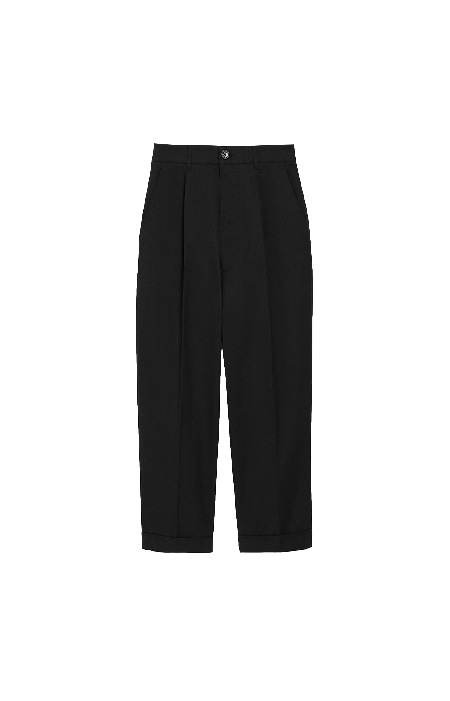 This carrot trousers by Ami Paris are crafted from cotton gabardine. They feature an oversized carrot fit, front pleats, buttoned belt and fly with horn buttons, and cuffed hems. An "ami alexandre mattiussi" paper jacron at the back completes the design.