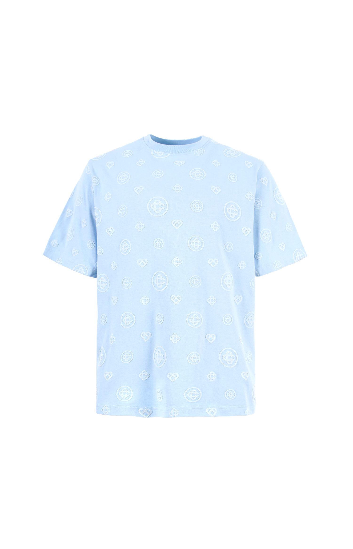 This Applique Monogram oversized T-shirt by Casablanca is crafted from organic cotton jersey in 100% organic cotton. It features a crew neckline, oversized silhouette, all-over applique Icon monogram print, and a diamond logo patch. Made in Portugal.