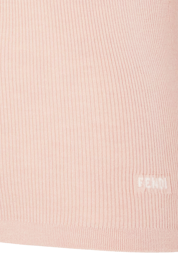 This jumper by Fendi is crafted in knit yarn with a fitted silhouette and short sleeves. It features a polo collar with three mother-of-pearl buttons, Fendi lettering intarsia, and a detachable mink collar. Made in Italy.