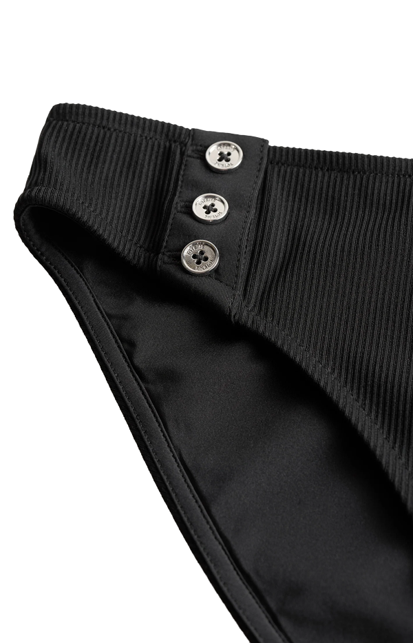 This bikini bottom by Toteme is crafted in fully lined ribbed four-way stretch jersey. It features a mid-rise silhouette with moderate coverage and a side placket with silver buttons.