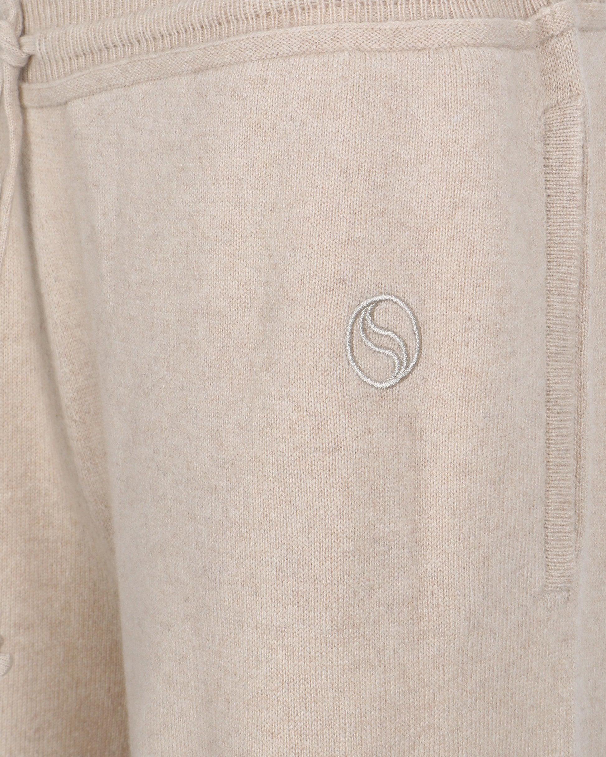 These cashmere blend trousers by Stella McCartney combine luxury and comfort in one. In a neutral oat shade, they feature a relaxed straight fit with a drawstring waist, side pockets and tonal embroidered logo on the left leg.