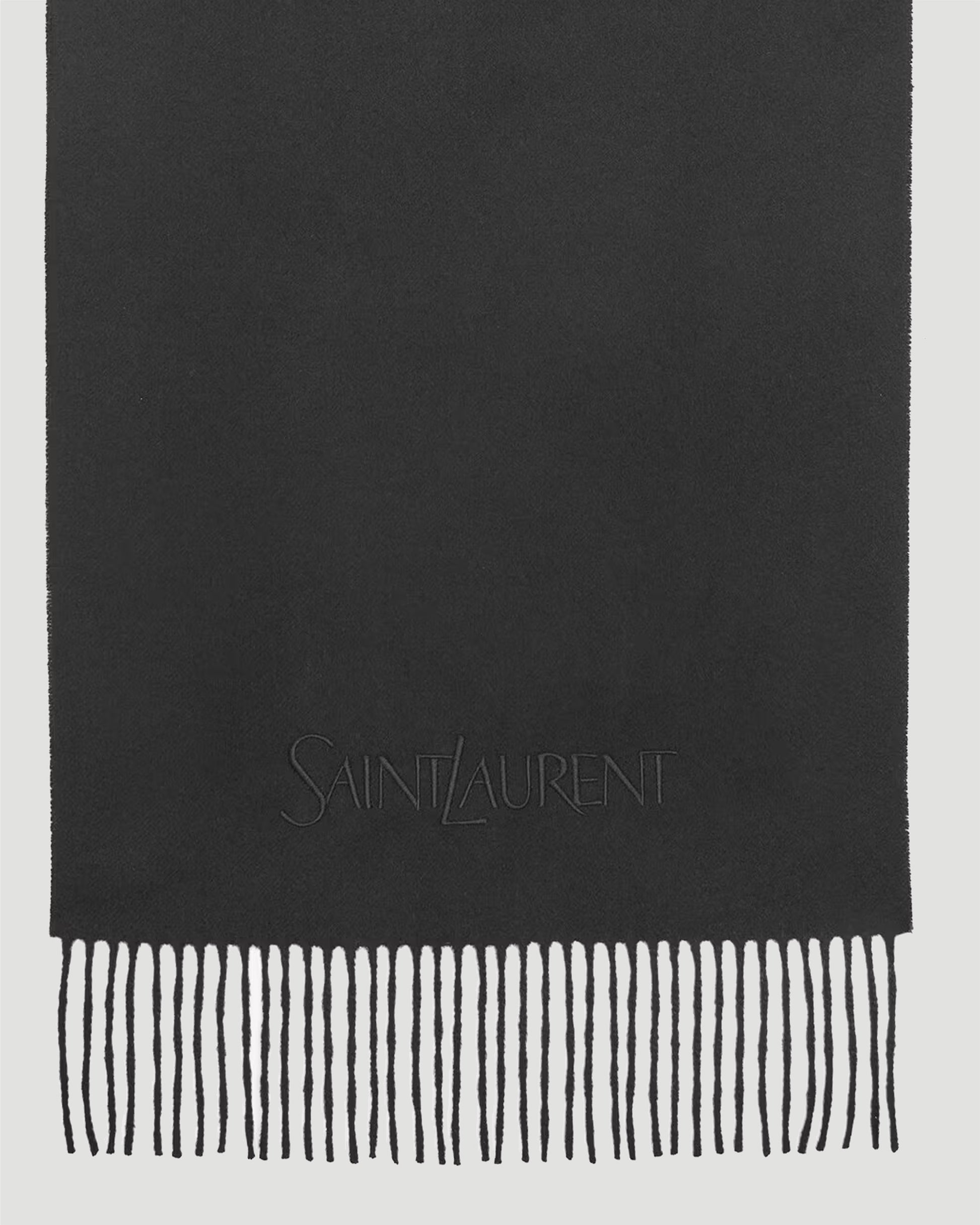This scarf from Saint Laurent features a subtle logo embroidery, adding a touch of sophistication, while the fringed ends offer a classic finish.