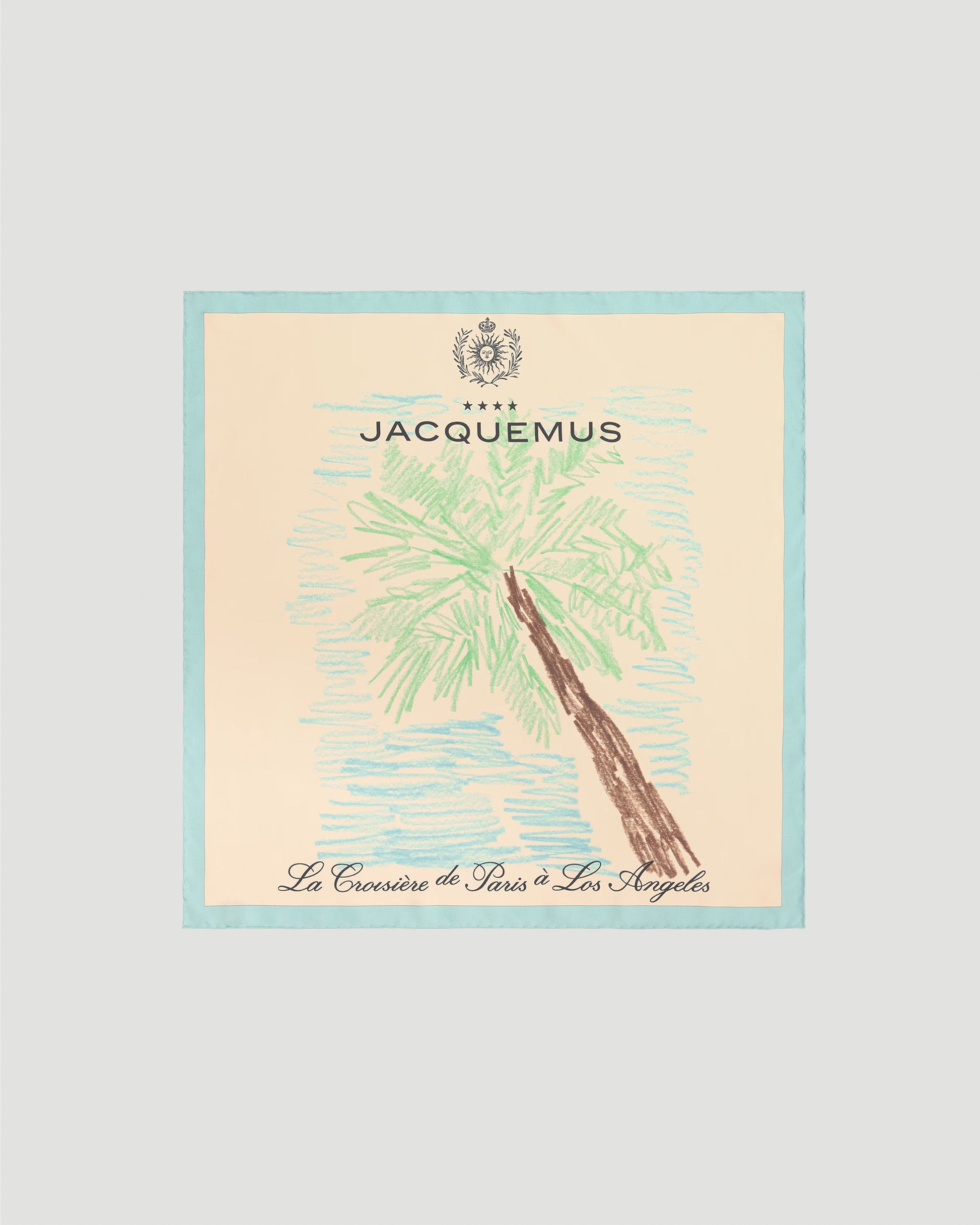 This silk bandana by Jacquemus features a vibrant palm tree motif, evoking a breezy, tropical vibe. Crafted from printed silk with hand-rolled edges, it’s adorned with the Jacquemus Cruise logo, offering a stylish, summery touch to elevate any outfit.