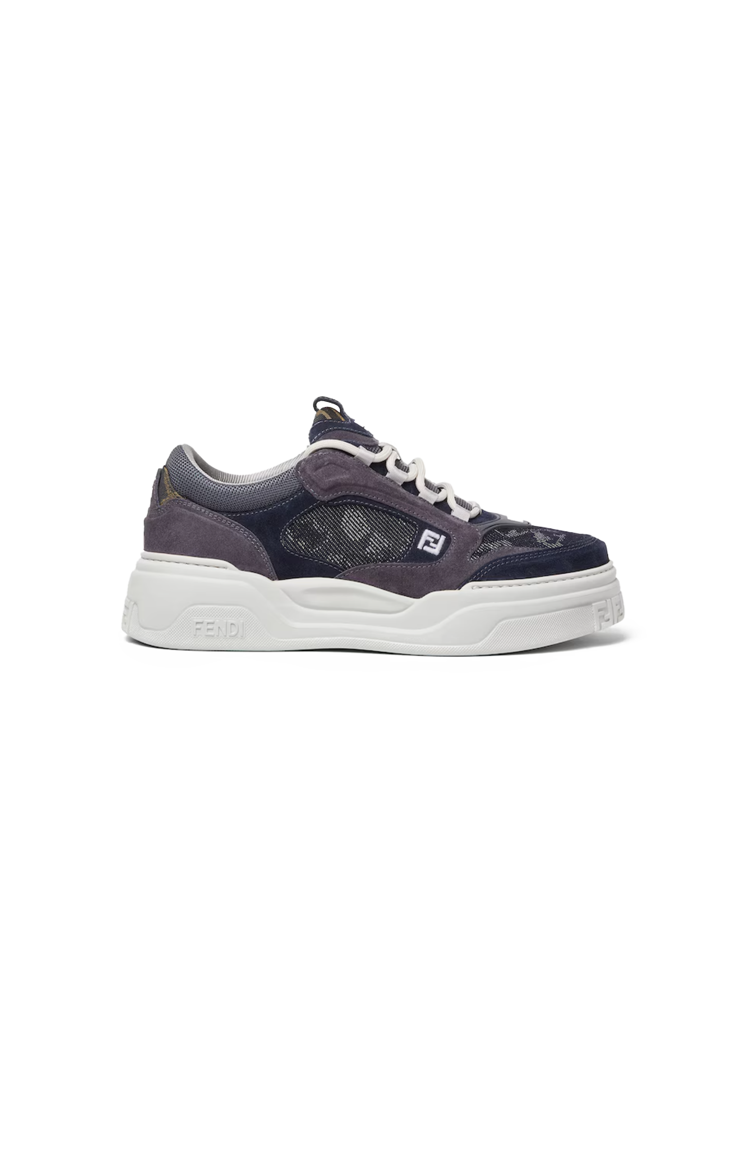This Fendi Force lace-up low-top sneakers by Fendi is crafted from full-grain leather with padded elements. Designed with FF jacquard, smooth leather, and technical fabric details, it features a lightweight chunky sole with FF motif detailing on the toe and heel.