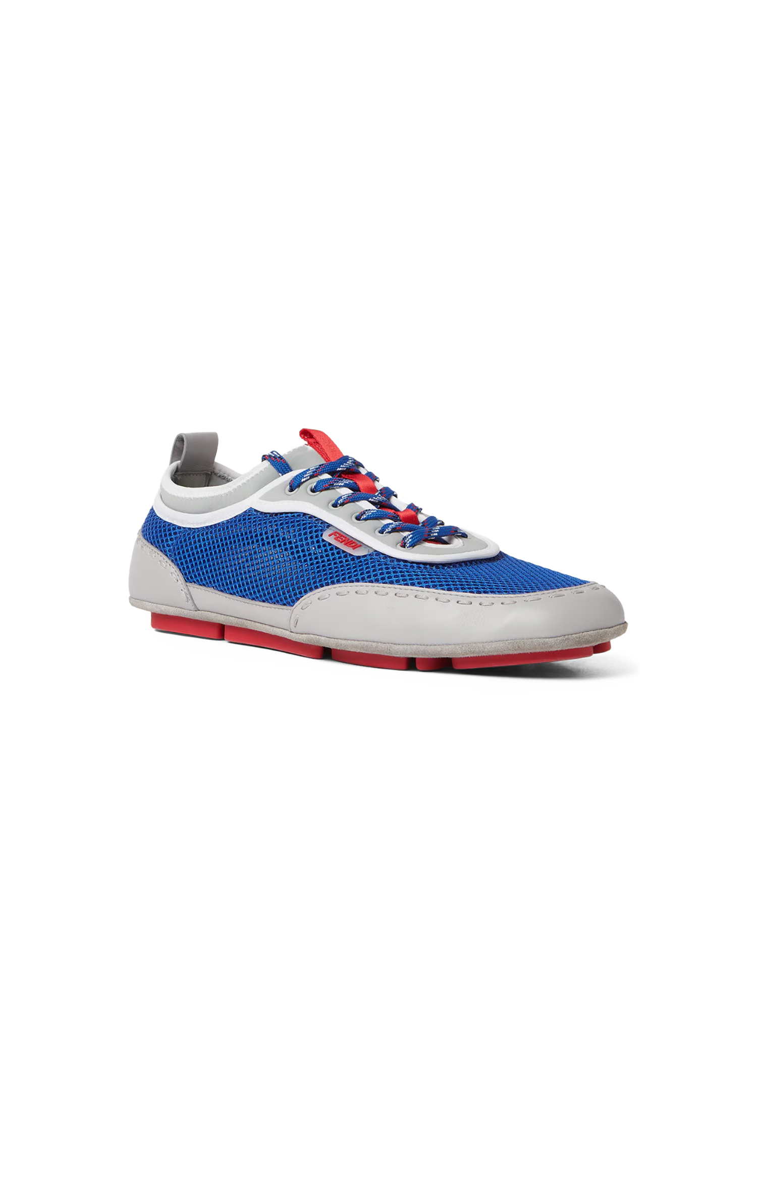 These Fendi Fit Trainers feature a low-top silhouette in mesh and calf leather. They have a lace-up closure, padded tongue, and rubber sole, combining clean lines with sporty, modern styling.