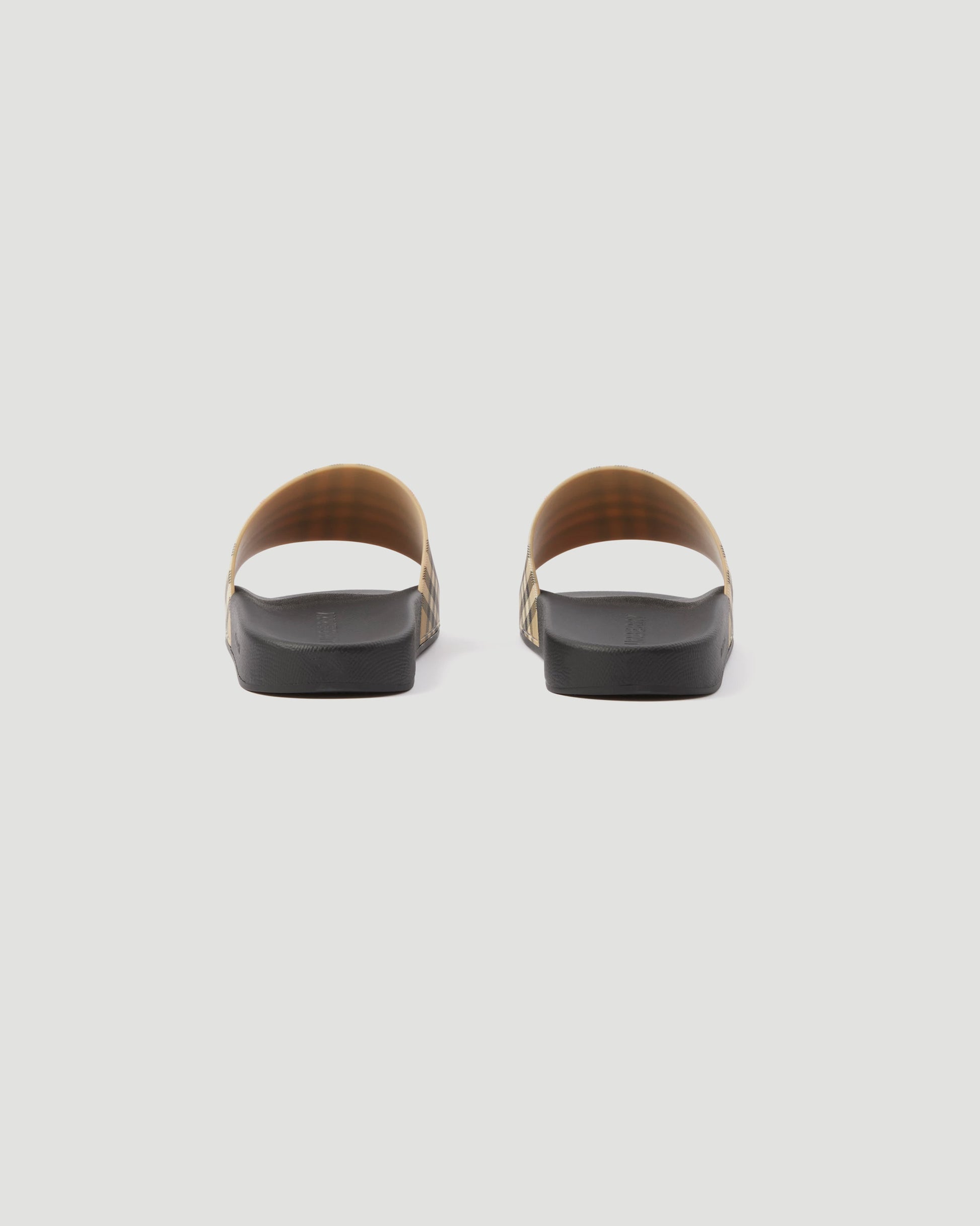 This slide sandals by Burberry is crafted with an all-over Burberry Check print. Designed with a contoured insole and embossed Burberry lettering at the side.