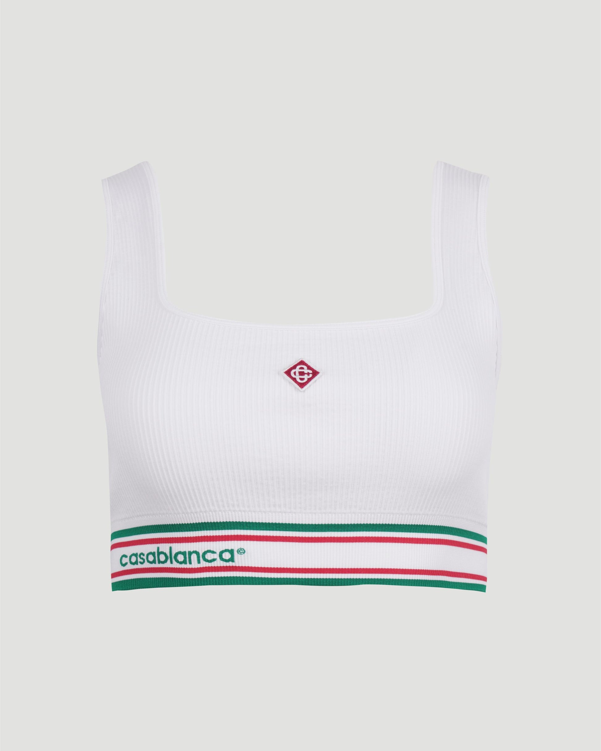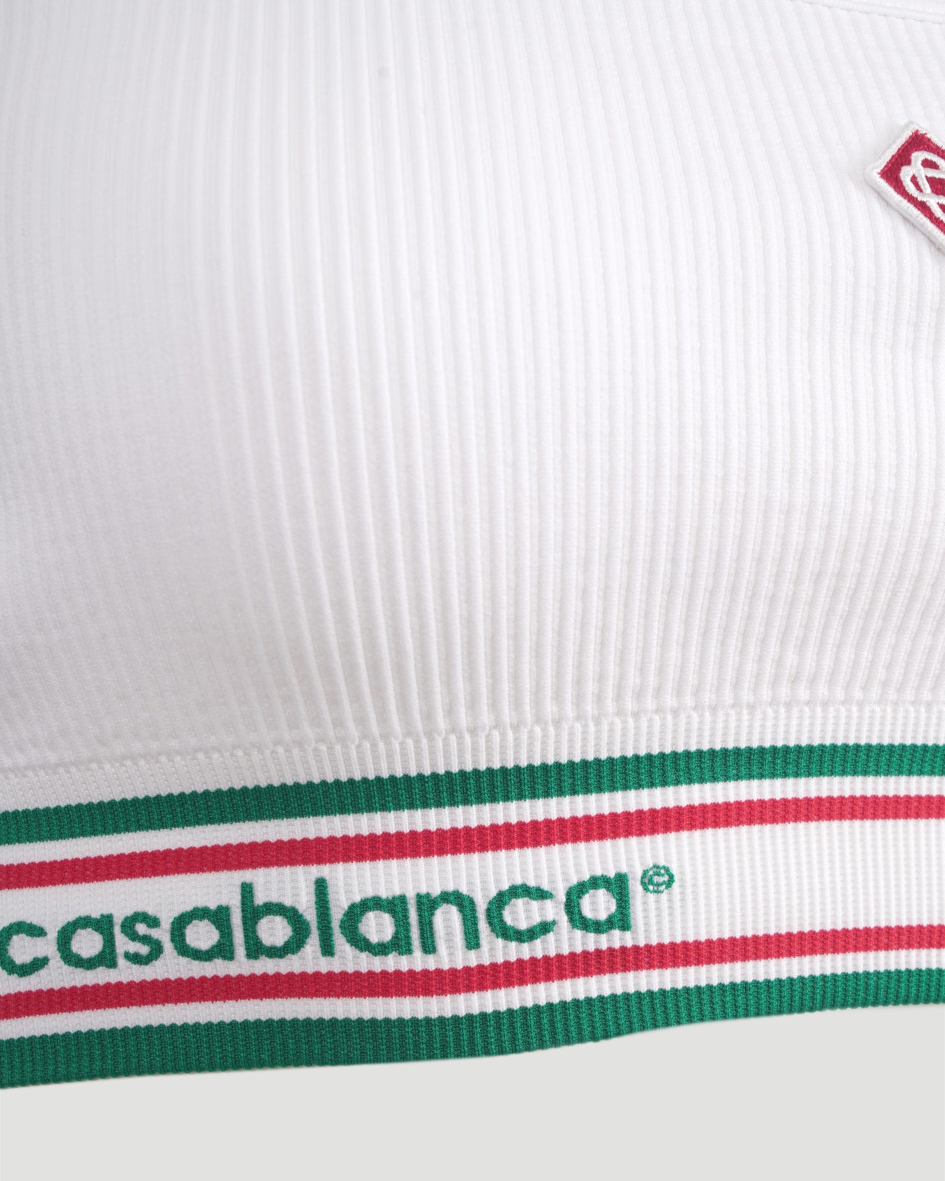 This sports bra by Casablanca is crafted from ribbed stretch fabric for a smooth, supportive fit. It features an elasticised underband, thick straps, and the house’s signature diamond logo at the centre.