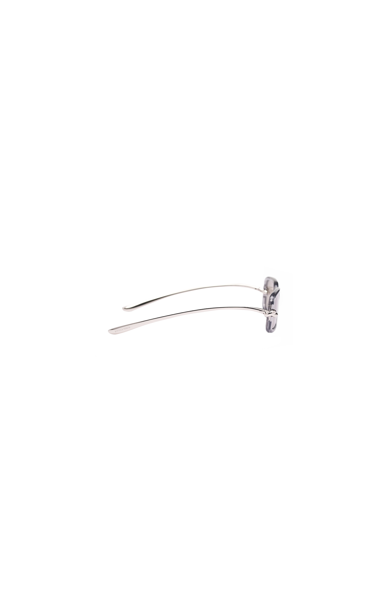 This rectangular sunglasses by Bottega Veneta are crafted in Japan from polyamide. They feature gray-tinted cutout lenses, metal temples with aerodynamic shape, and signature knot detailing at the temples.