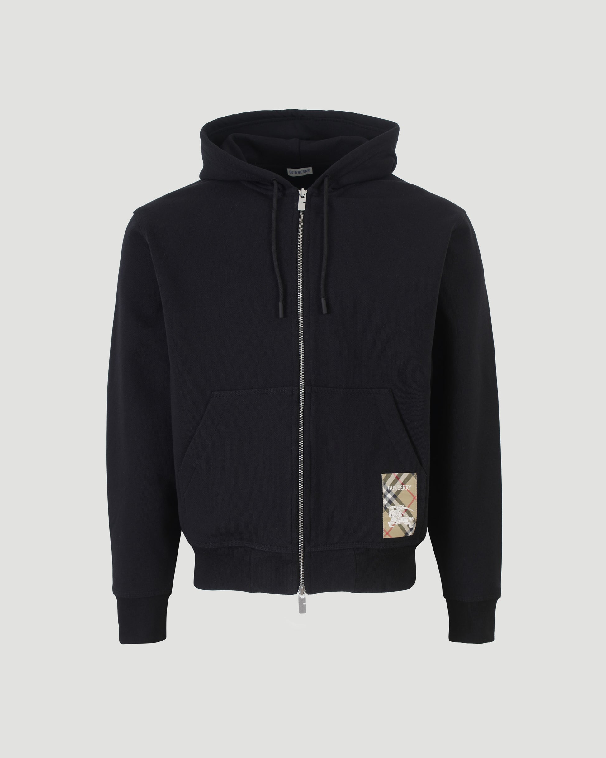 This cotton sweatshirt by Burberry is crafted from cotton and features a drawstring hood. Designed with a front zip fastening, it includes a kangaroo pocket and ribbed trims.