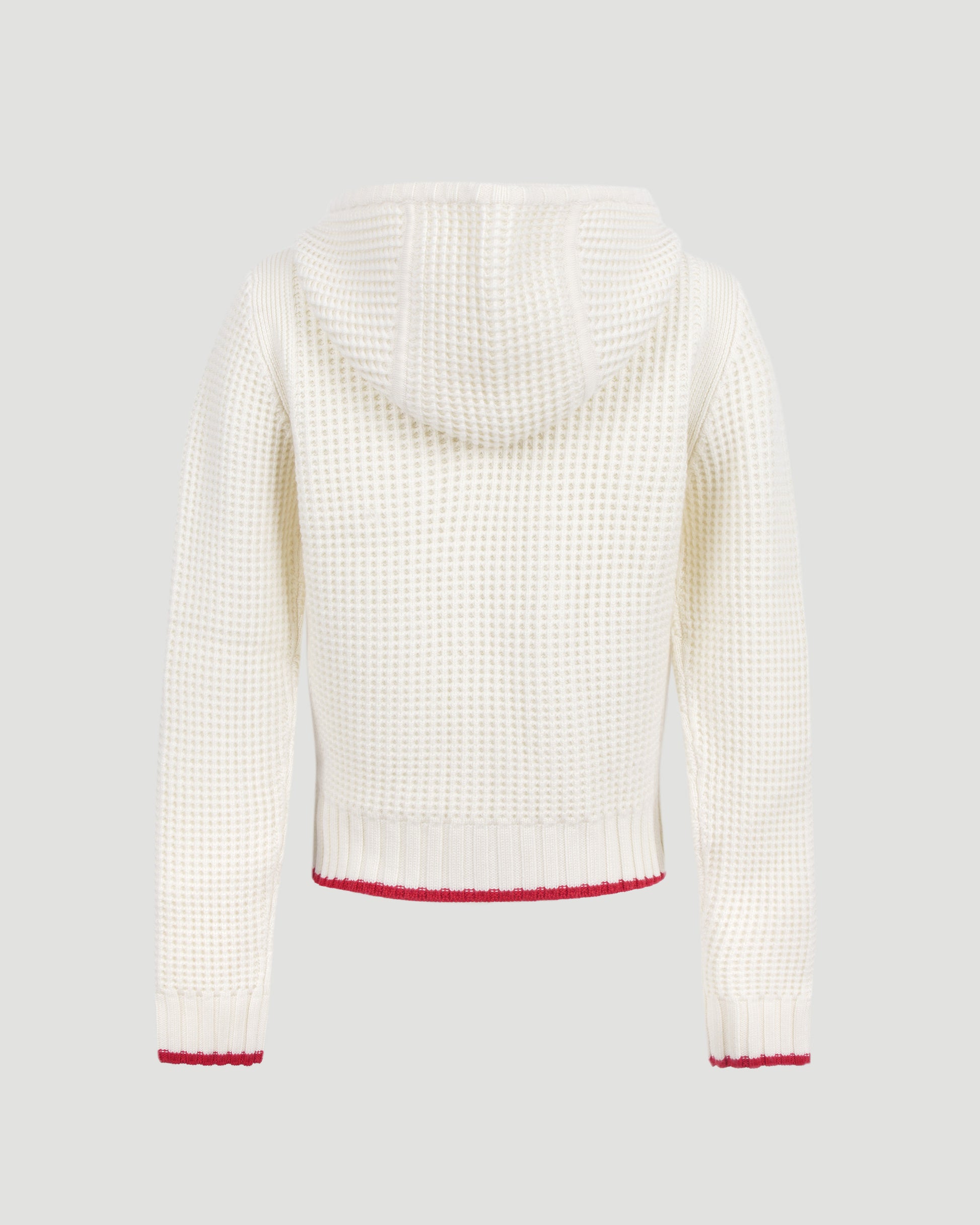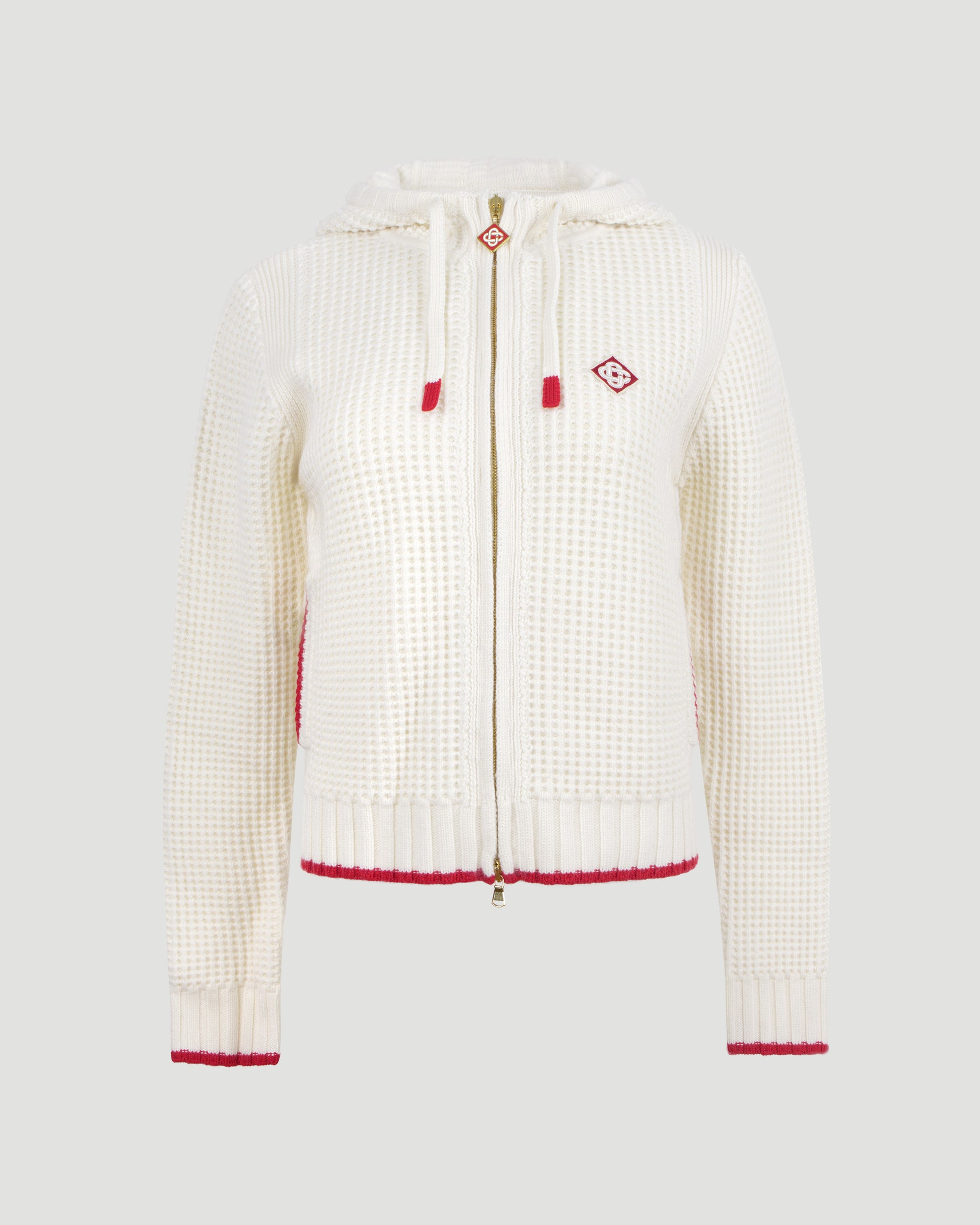 Zip-up hoodie by Casablanca in waffle knit, detailed with red trim and an embroidered logo. Features a drawstring hood and front zip fastening.