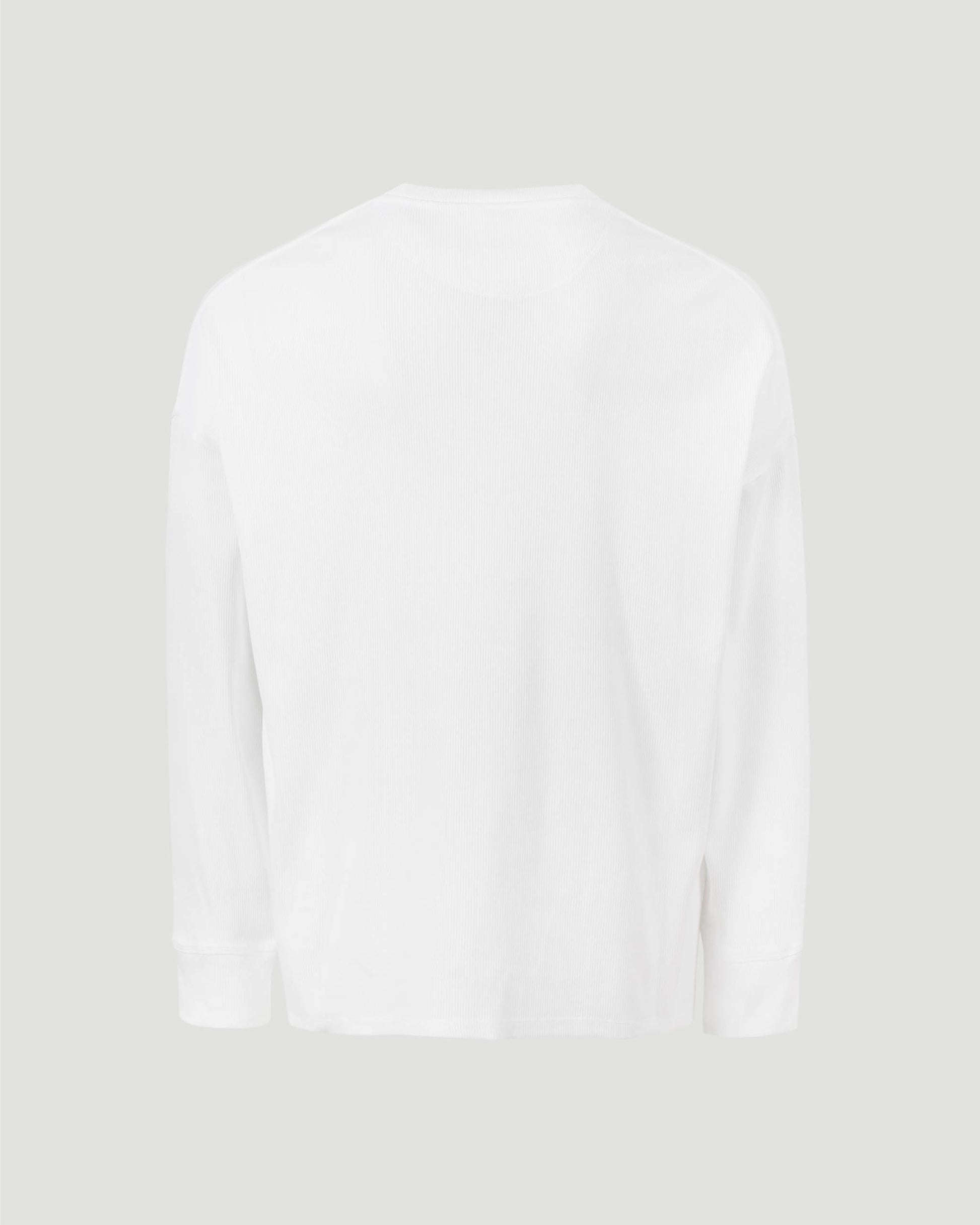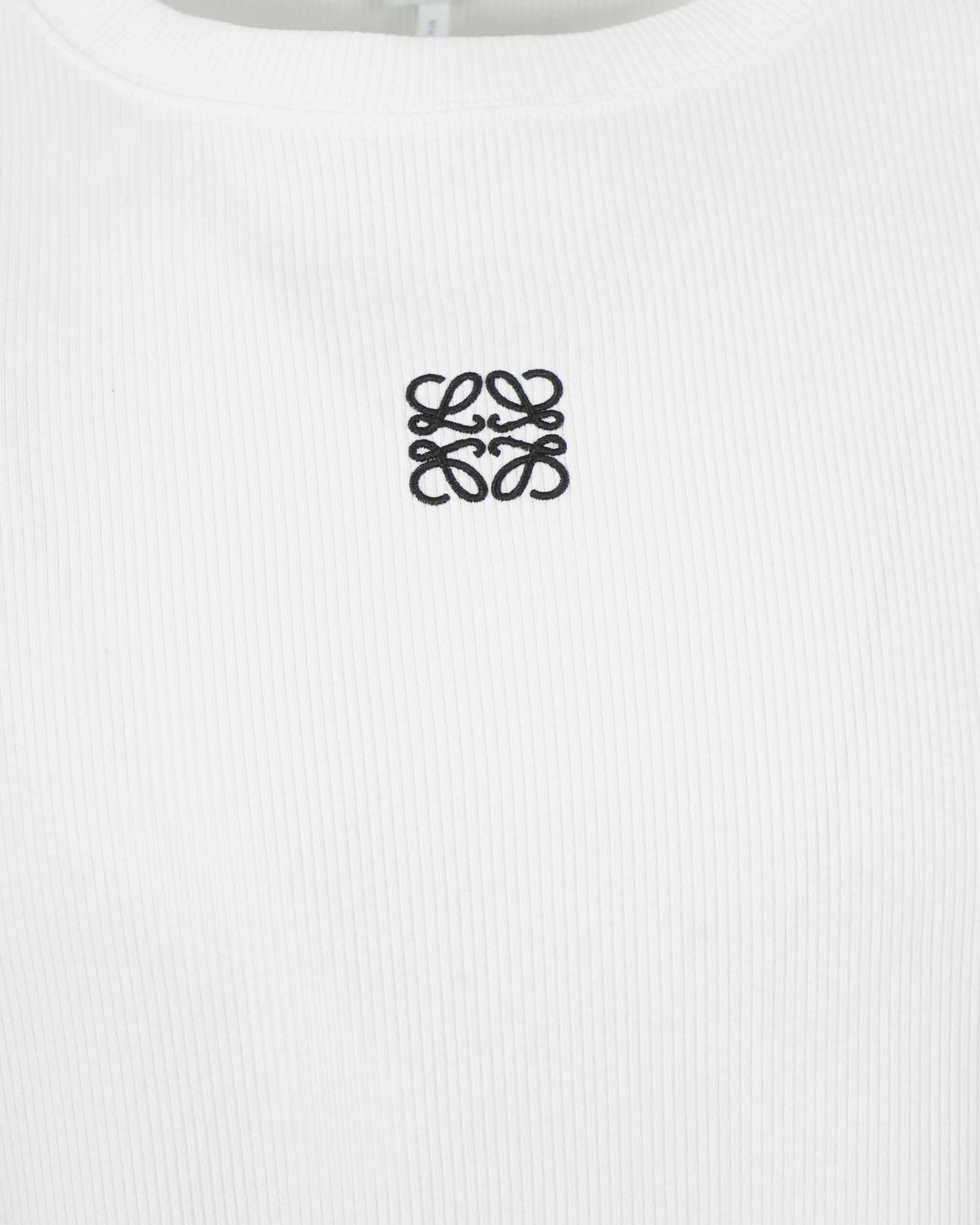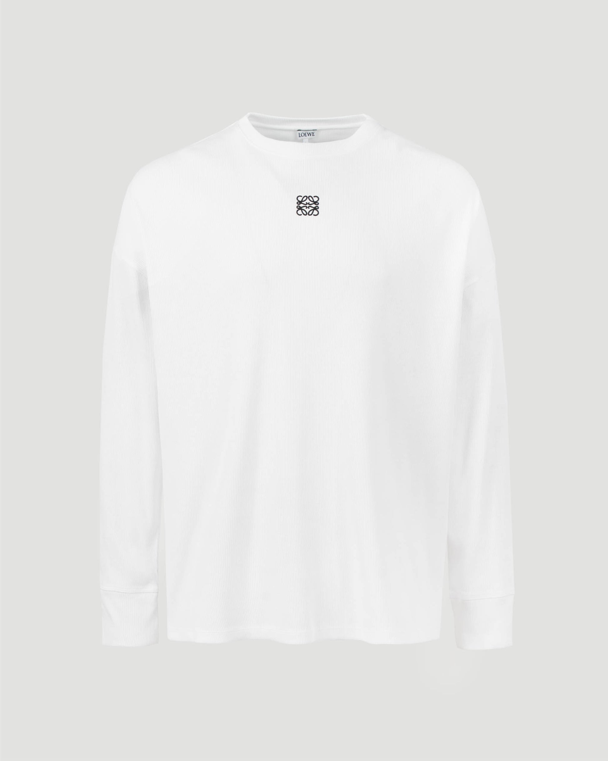 This long sleeve T-shirt from Loewe is crafted in medium-weight ribbed cotton jersey in white. It features an oversized fit with a classic crew neck, ribbed collar and cuffs, and long sleeves. The design is completed with the signature Anagram embroidery placed at the front.