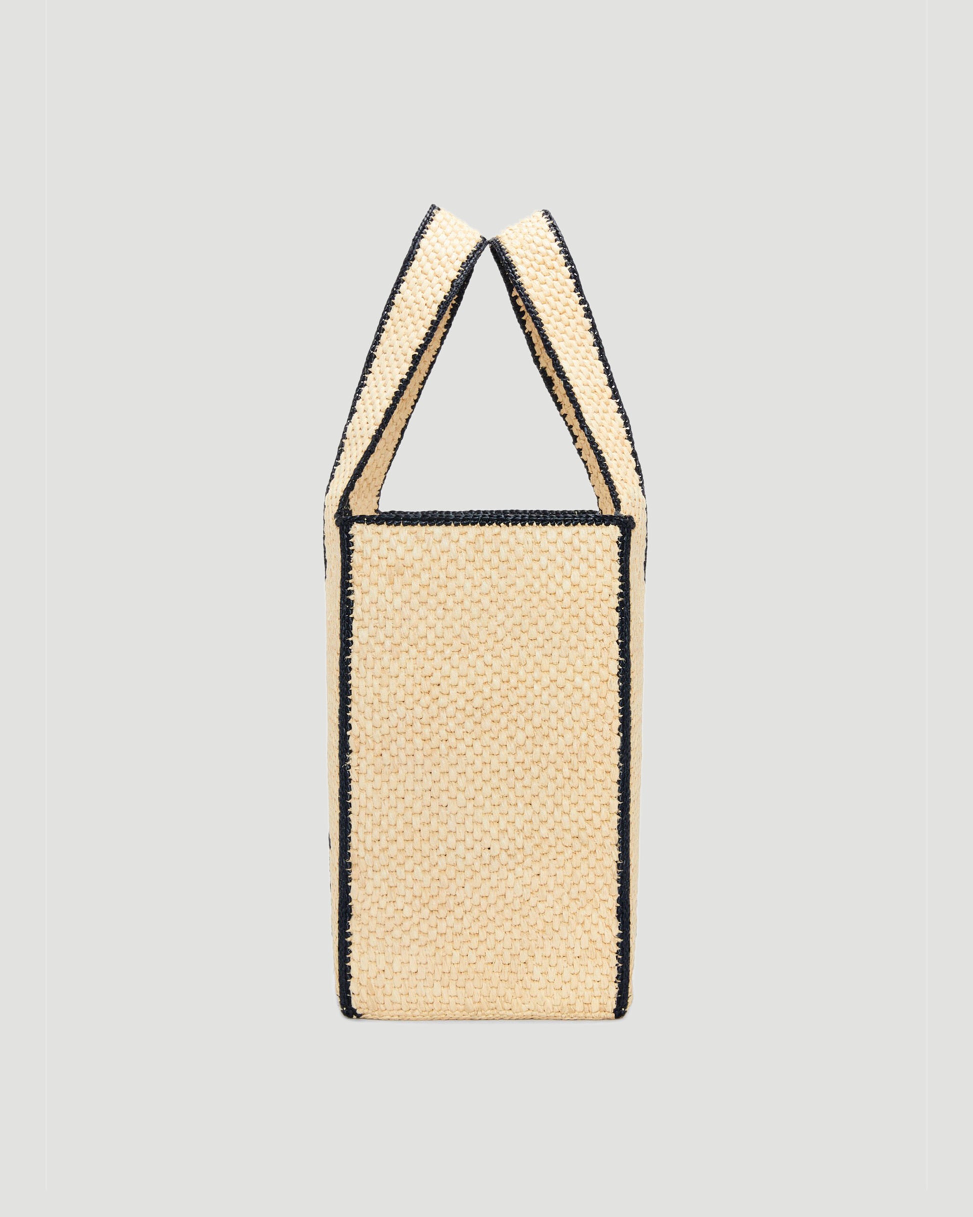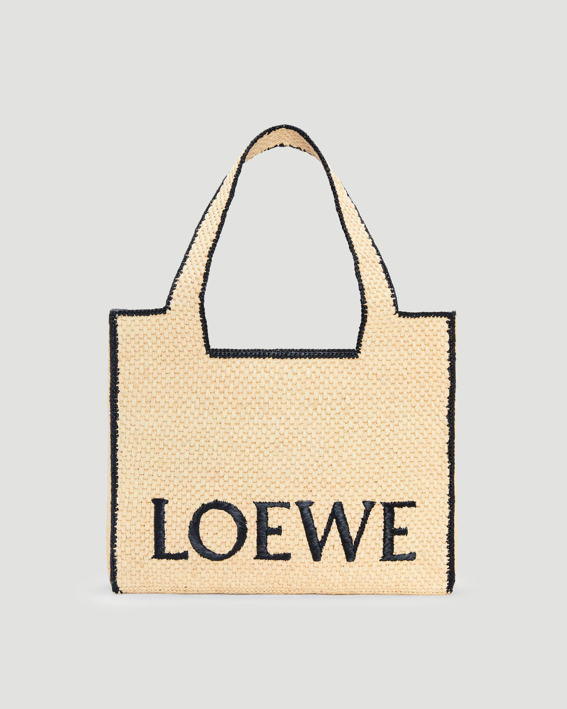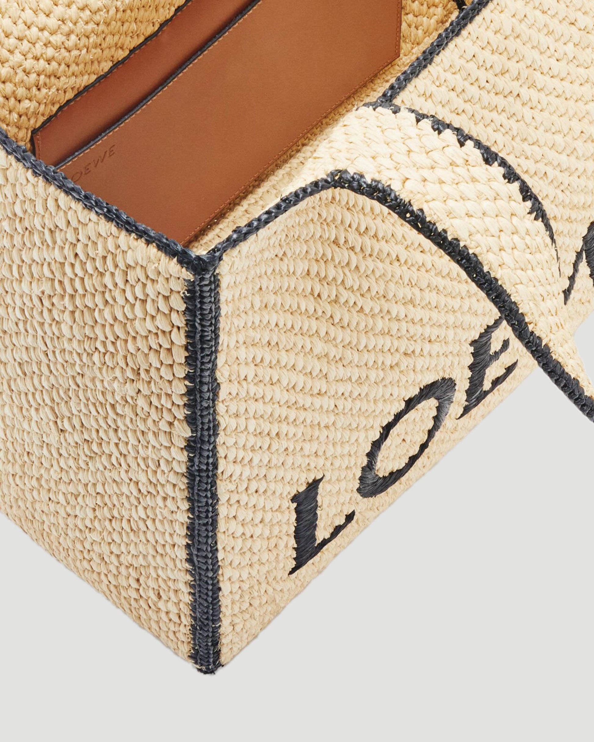 The perfect beach bag from Loewe. Made from raffia, this tote bag is detailed with a contrasting LOEWE signature. Featuring cuboid shape, hand carry & shoulder carry and internal calfskin pocket.