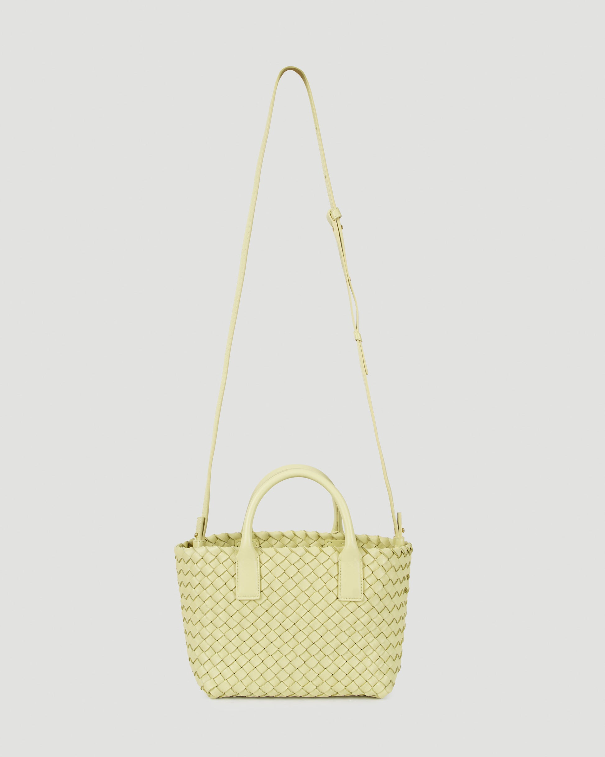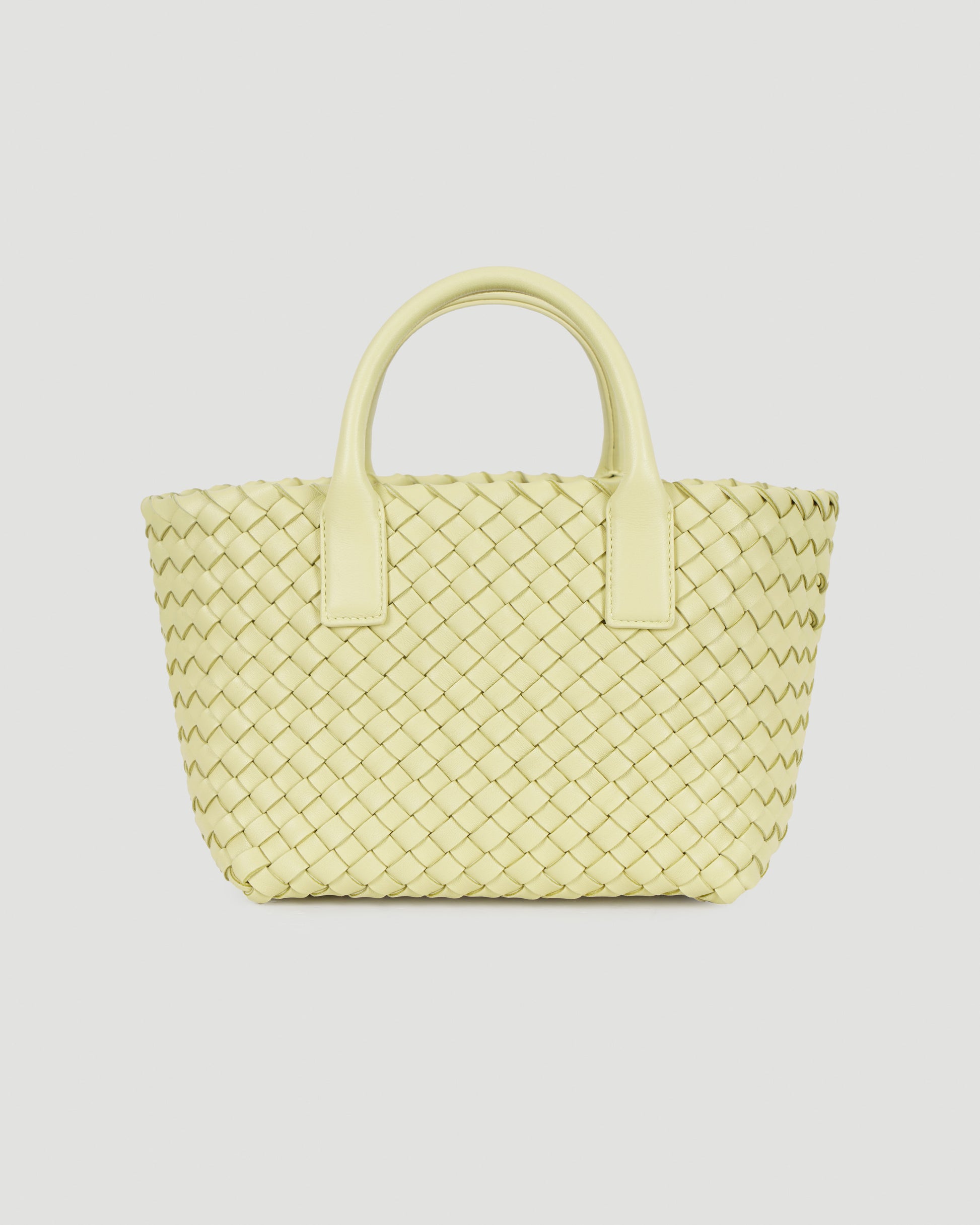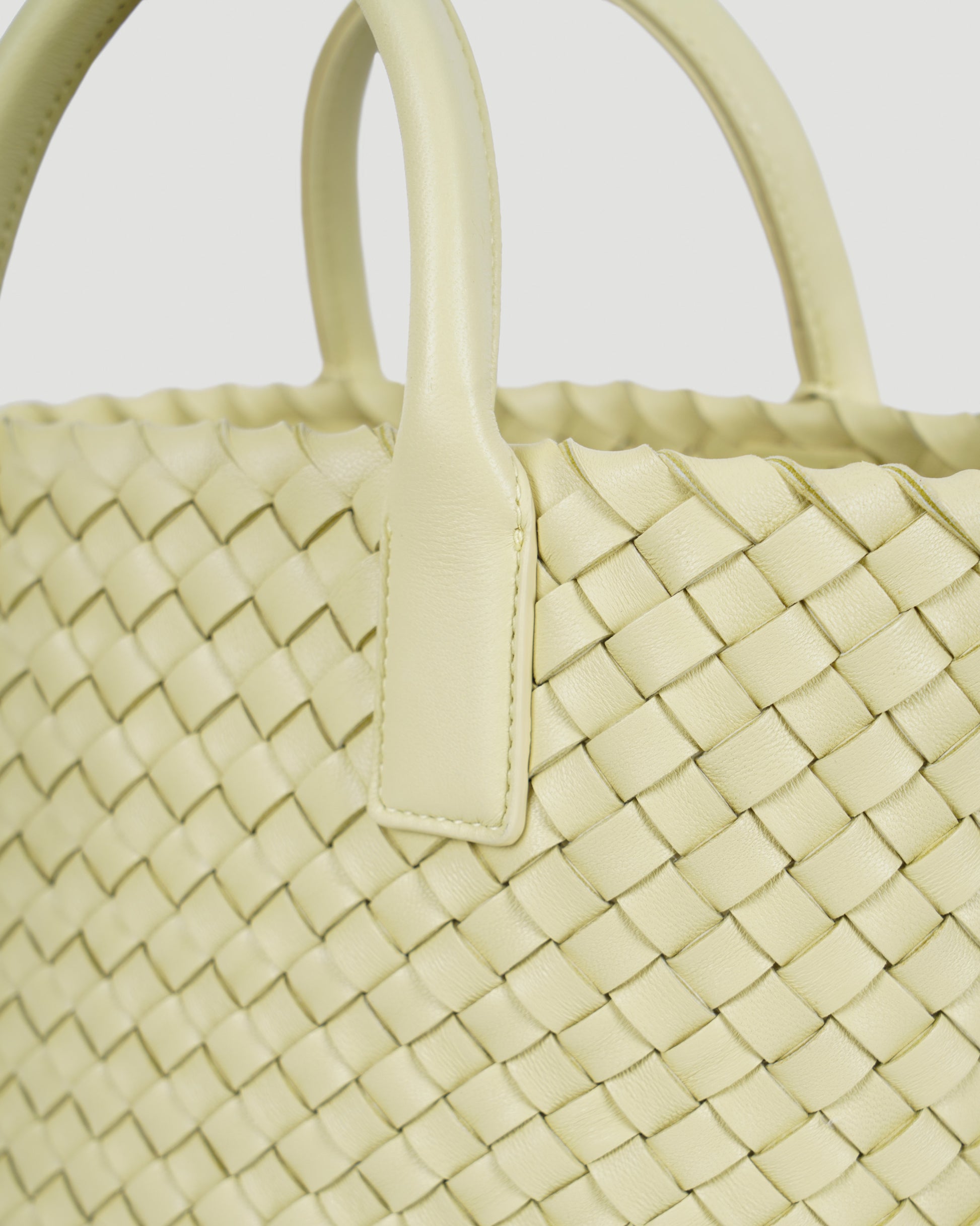 Adorable mini bag from Bottega Veneta. Crafted from lambskin in butter gold hue, this bag has enough space to fit all of the important things that you carry during the day. Featuring Bottega Veneta's iconic intrecciato design, rigid handle, removable and adjustable shoulder strap. On the inside there is a removable leather pouch with a zipper inside that can be used as a wallet.