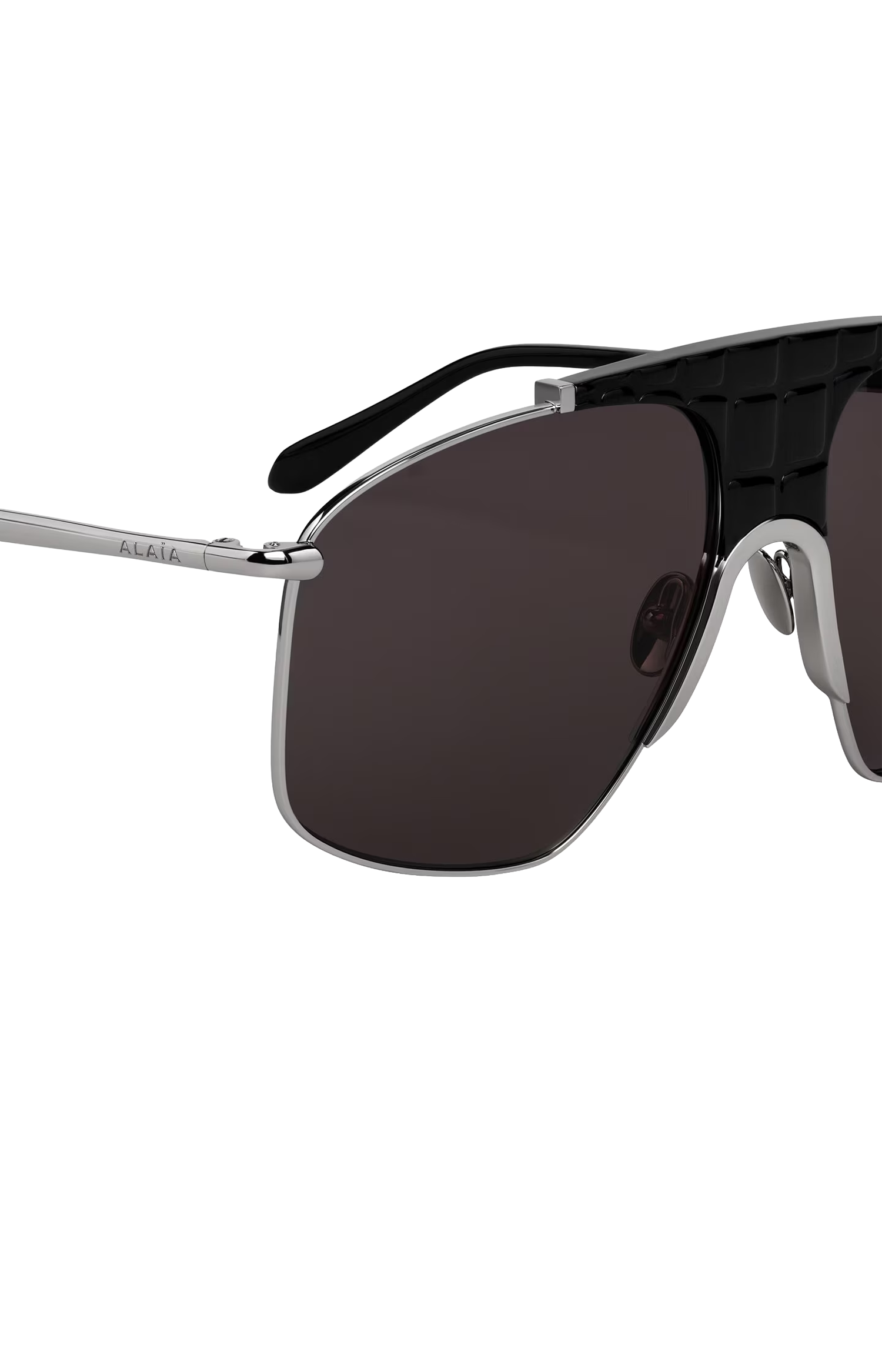 These square aviator sunglasses by Alaïa are crafted from metal and crocodile-printed acetate. They feature signature detailing on the temples.