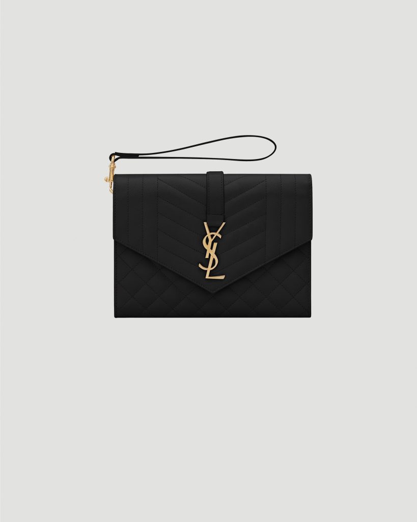 ENVELOPE FLAP POUCH IN MIX MATELASSÉ GRAIN DE POUDRE LEATHER