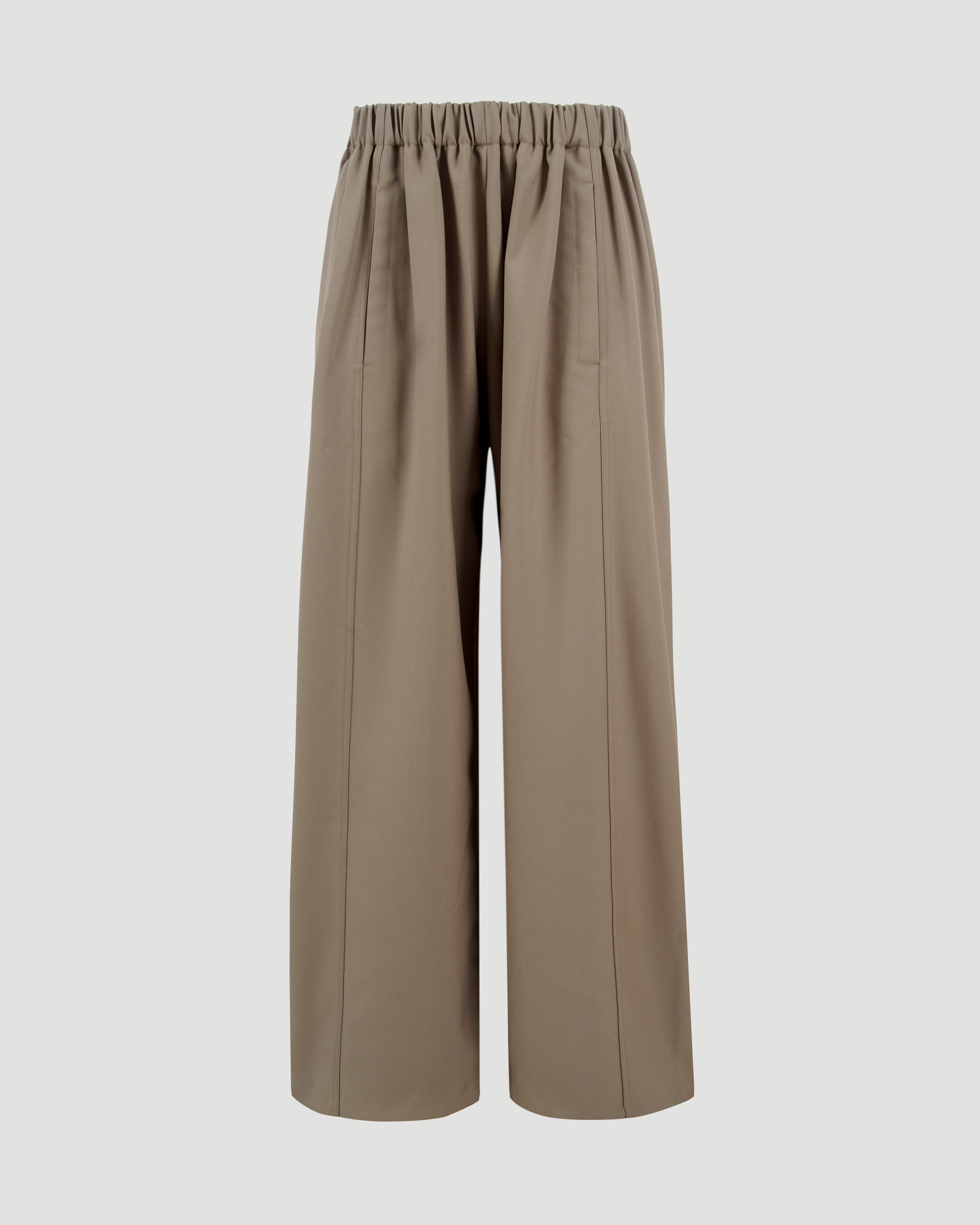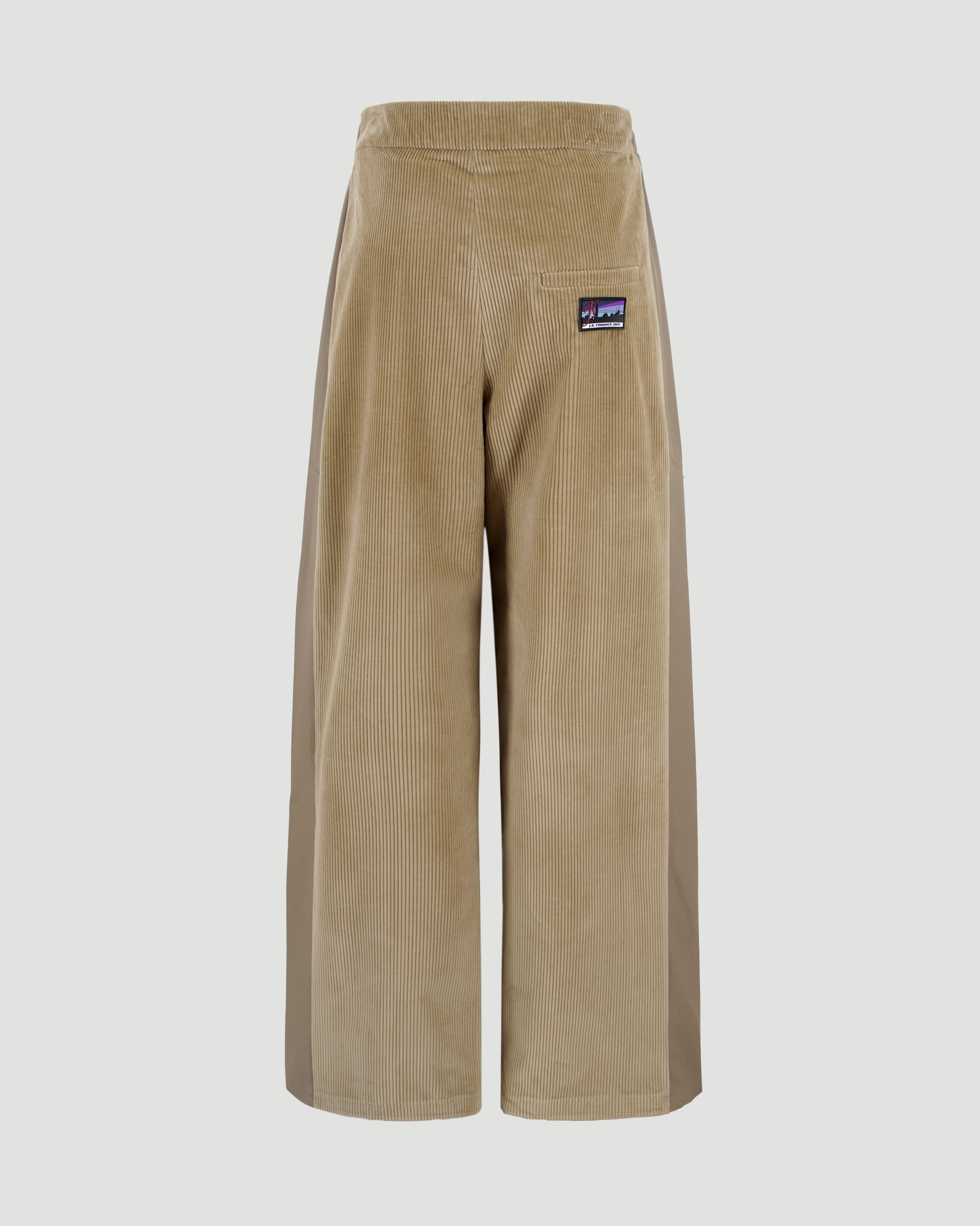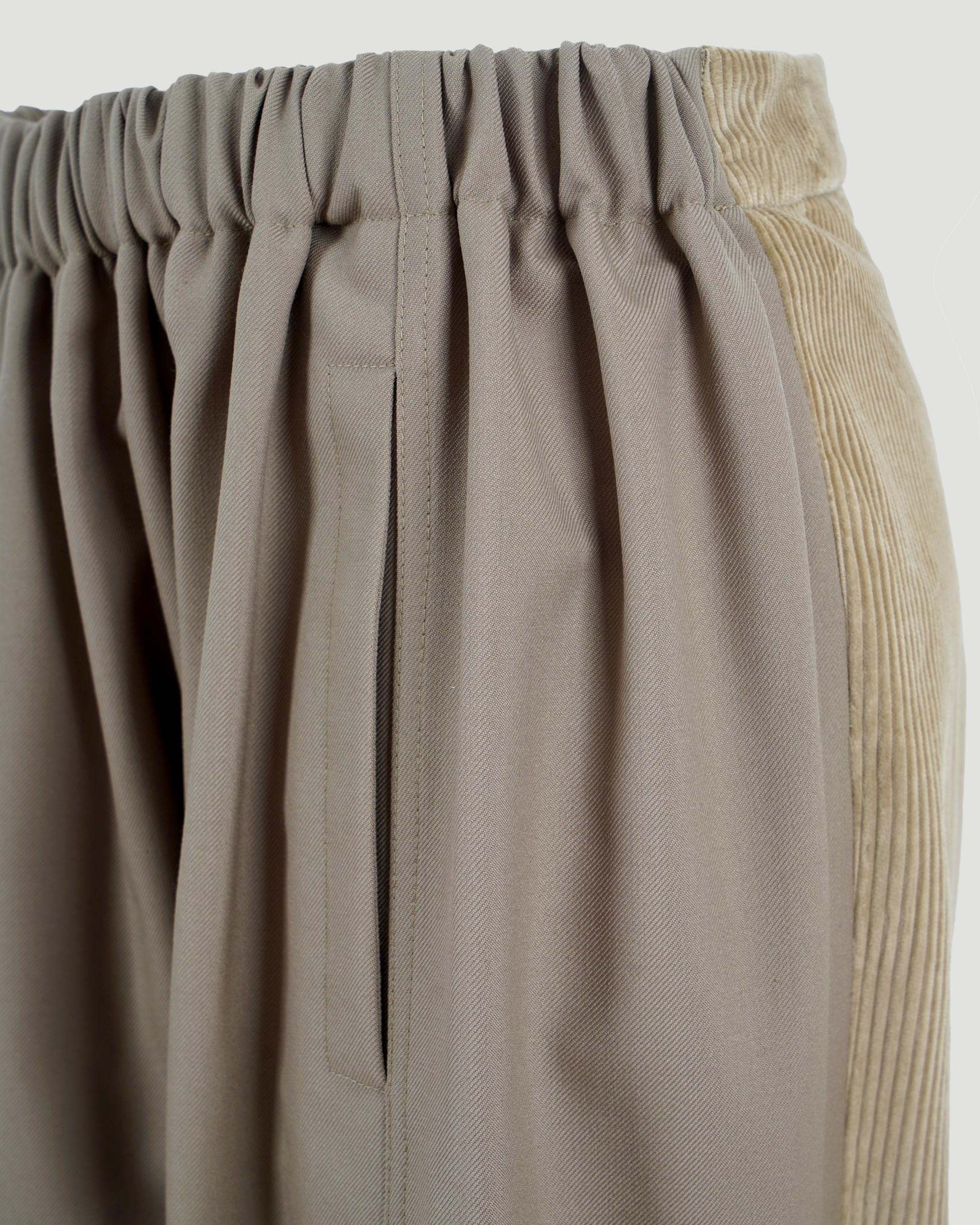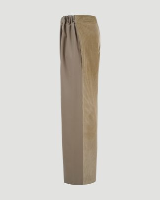 Wide-leg trousers by Julie Kegels, crafted in a bi-material design. Features side pockets, a single back pocket, and an elastic waistband for comfort. Finished with the JK Finance label on the back.