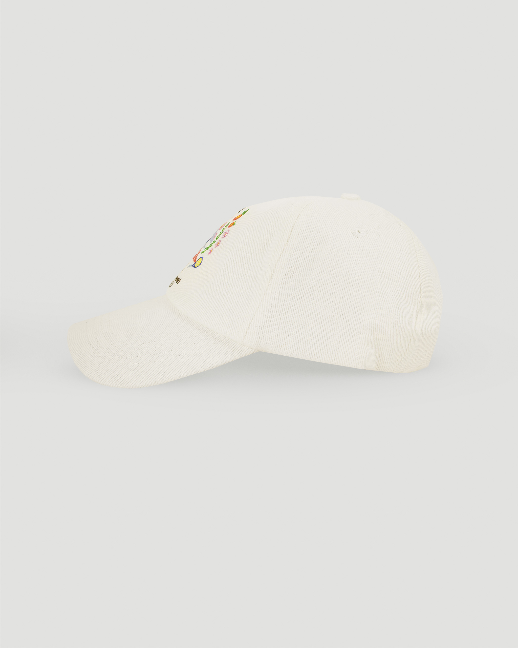 The Casa Way Mountain cap by Casablanca is a classic baseball silhouette elevated with seasonal artwork. At its center is a digitally constructed mountain logo, rendered with layered lines and gradients for bold, graphic branding. Made from cotton and finished with a curved peak and gold-plated adjustable buckle, this piece fuses function with distinct visual identity.