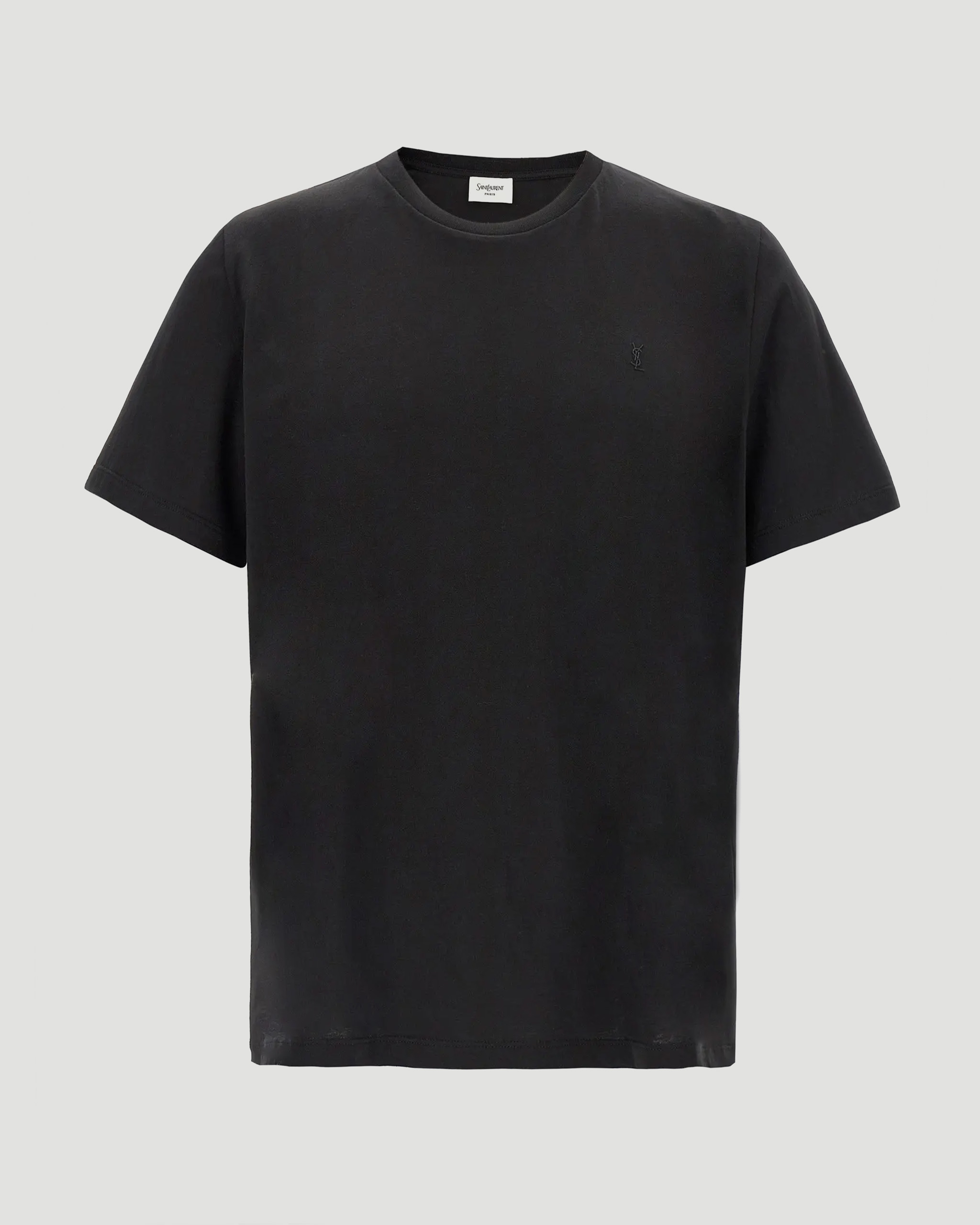 This T-shirt by Saint Laurent is made from cotton in black and features a crewneck, short sleeves, and tonal cassandre embroidery on the chest.