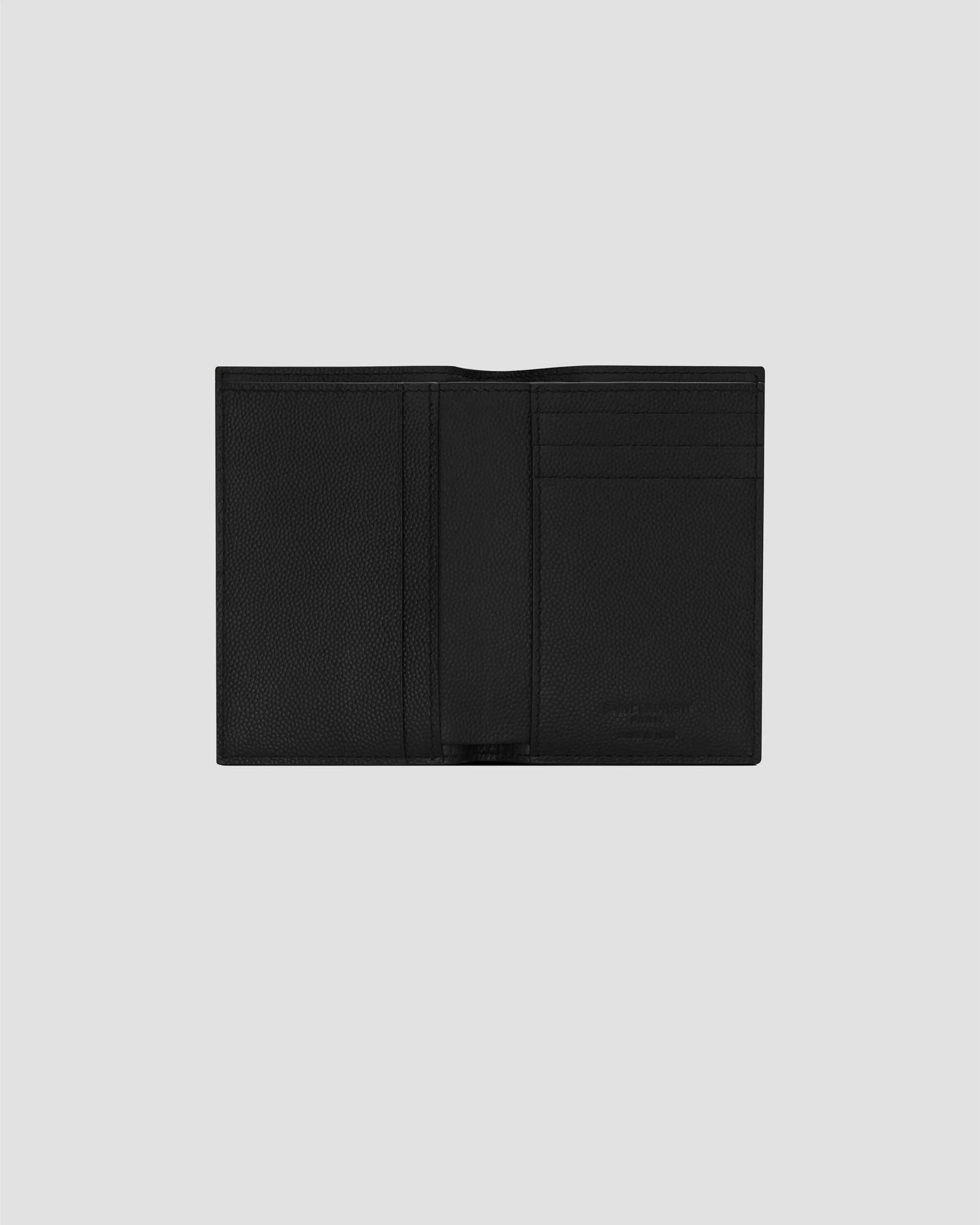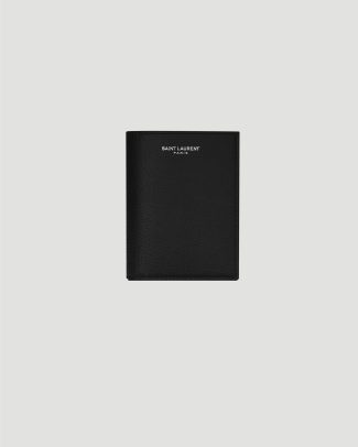 This Saint Laurent single-fold wallet is embossed with a Saint Laurent Paris signature and finished with silver-toned metal hardware. It includes four card slots, two receipt compartments, and one bill compartment.