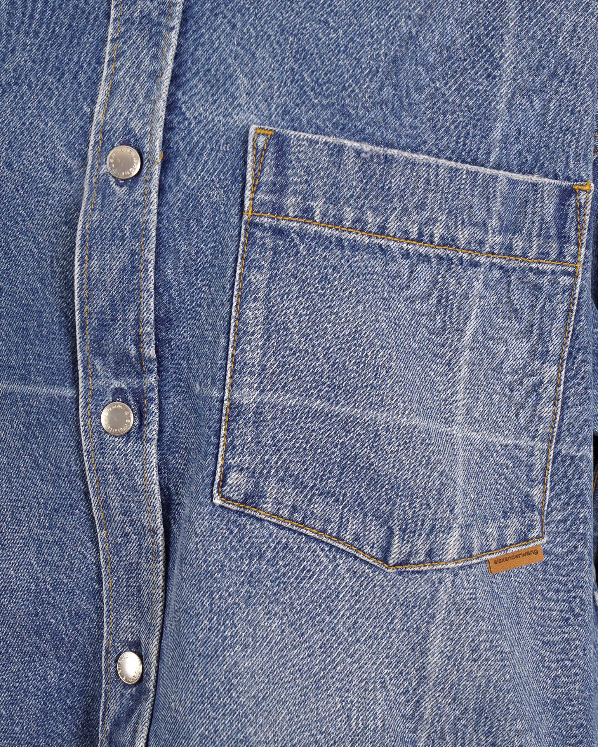 This tailored blazer by Alexander Wang is crafted from black wool-mohair suiting, with a structured fit, center-front button closure, adjustable back tabs, three patch-style pockets, and branded tailoring details.