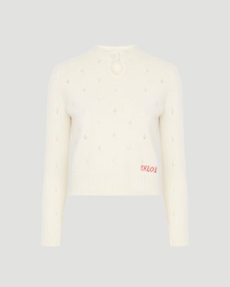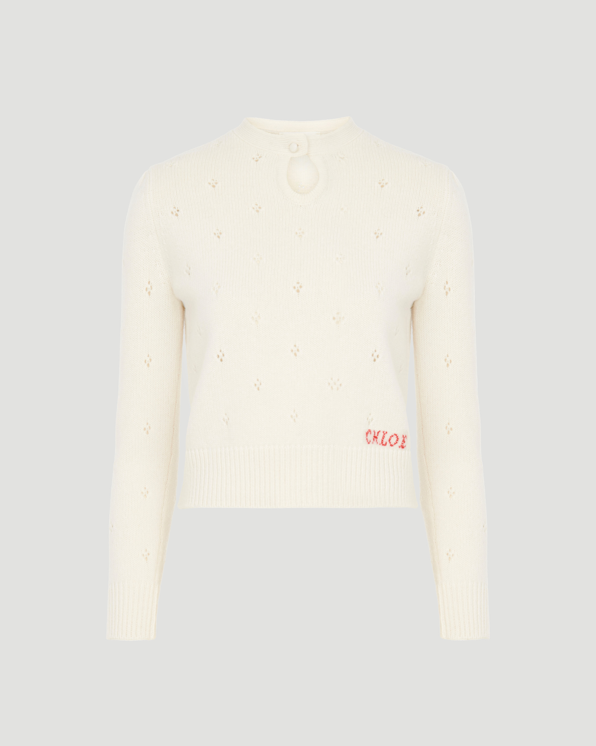 This fitted Chloé sweater is made from a chunky wool and cashmere knit with an openwork motif, featuring a buttoned keyhole neck, ribbed trims, and logo embroidery.
