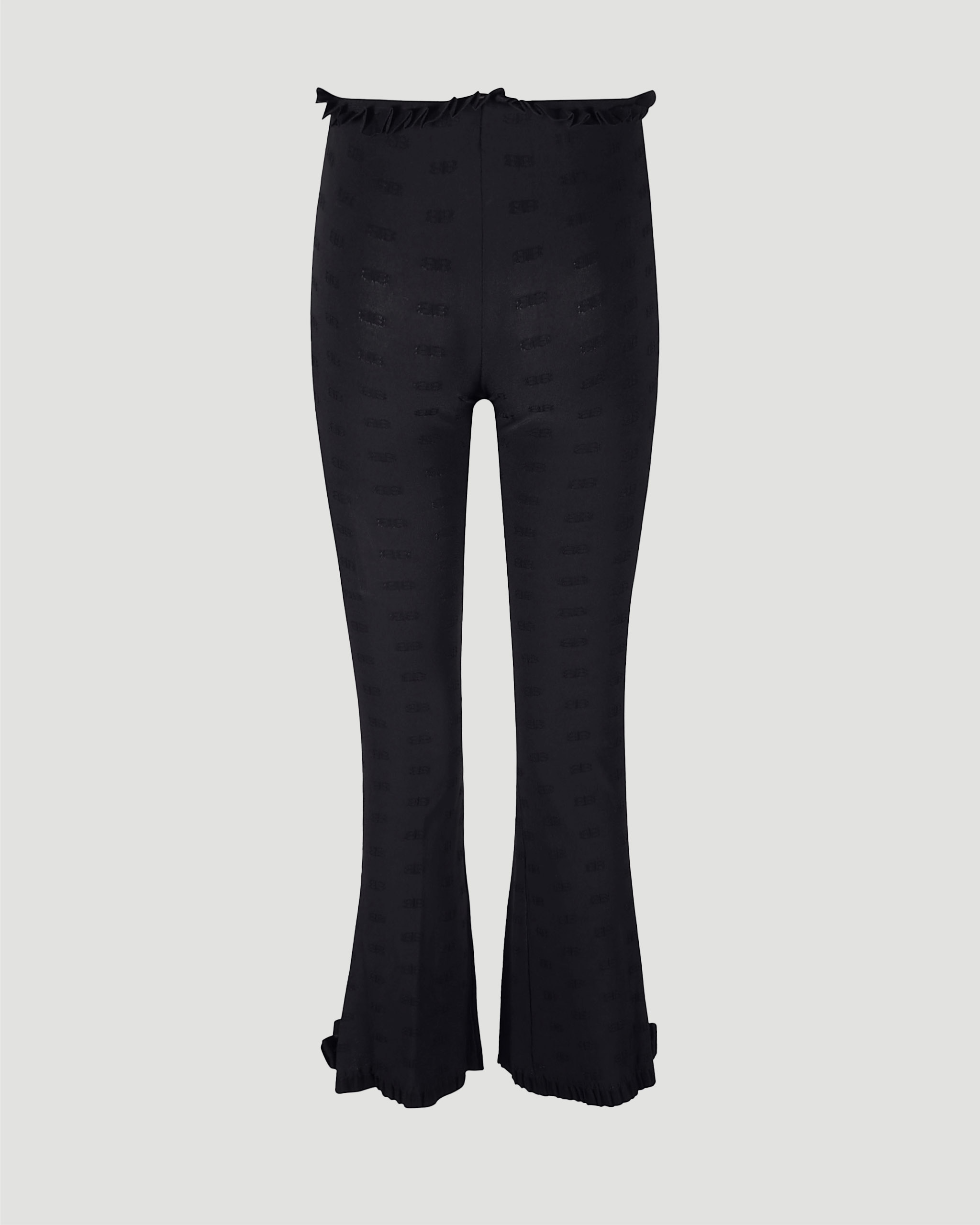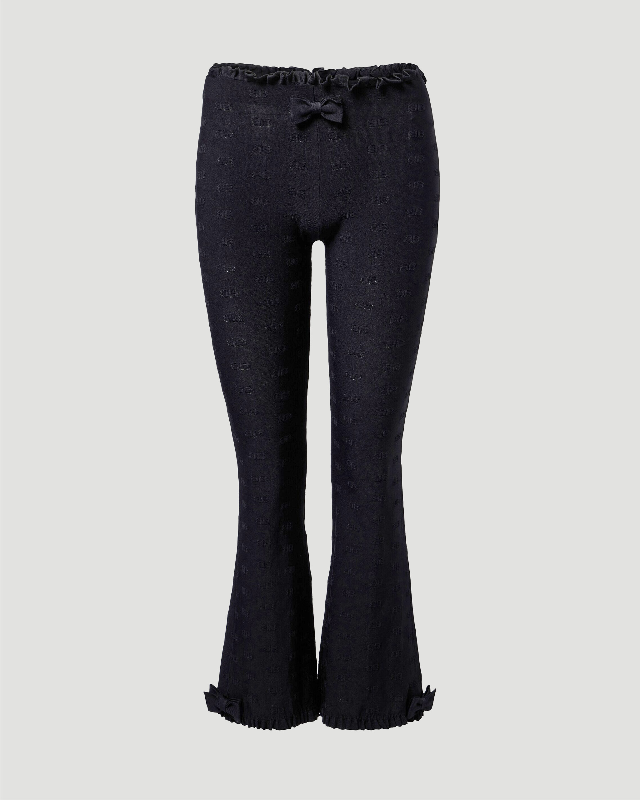 These Balenciaga flared capri pants are crafted in girly goth knit with an allover BB jacquard logo. They feature an elasticated waistband, ruffle and bow detailing at the waist and hems, and a cropped length.