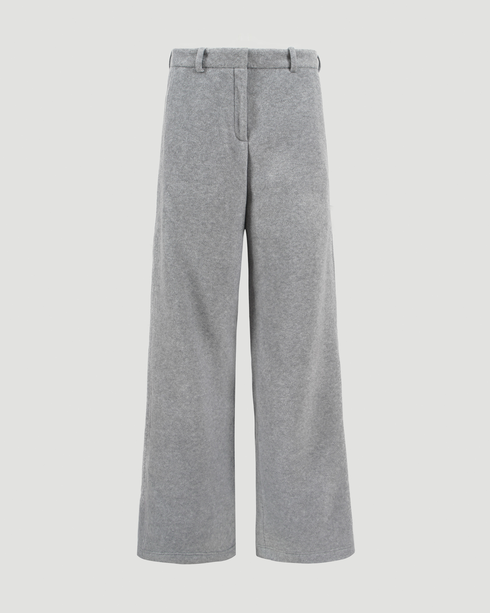 Straight-fit trousers by Julie Kegels in ultra-soft fleece. Designed with belt loops, side pockets, and a back pocket, and finished with the JK Finance label at the back.