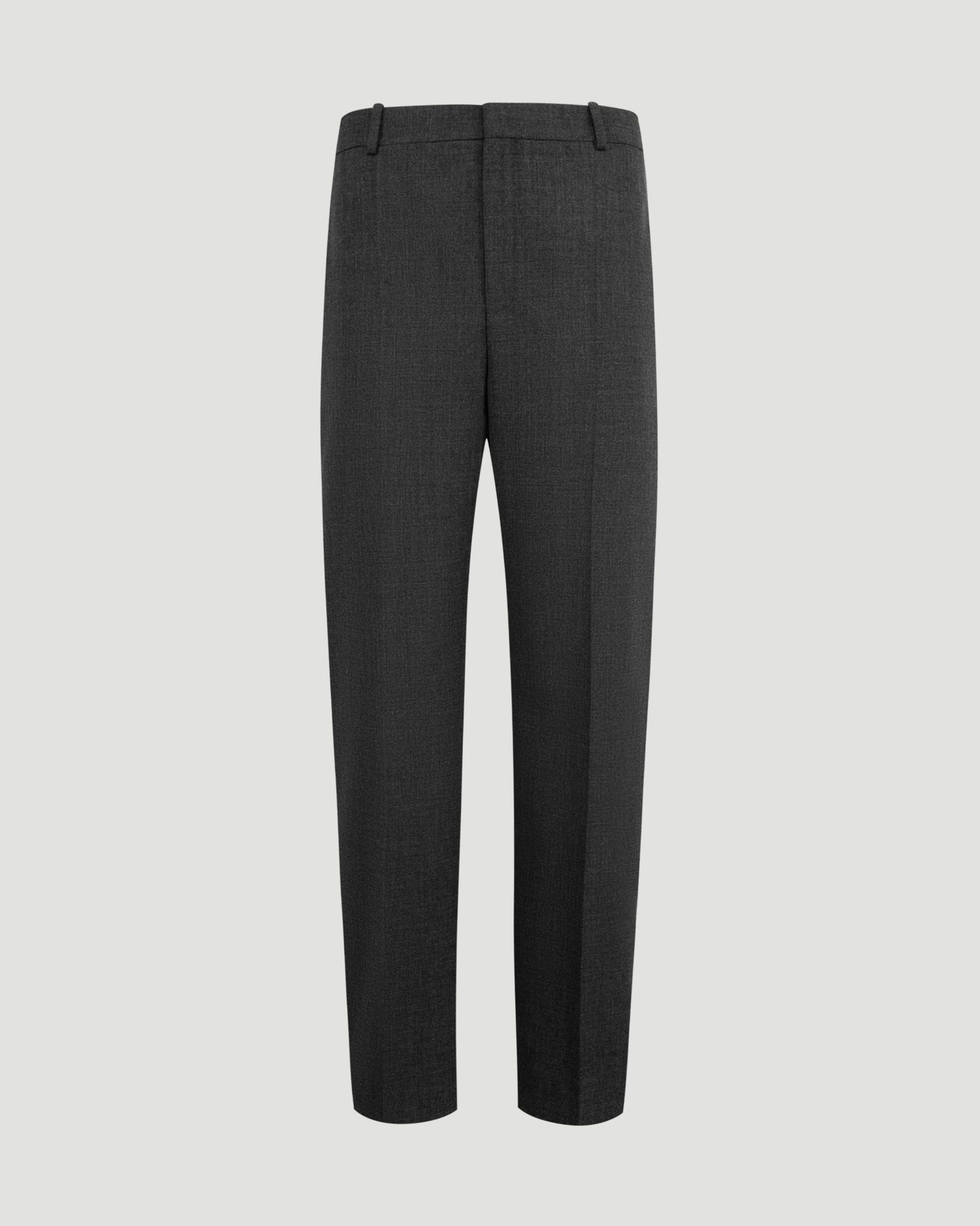 These wool pants by Saint Laurent feature a high waist and a tailored straight leg. Finished with a center crease, concealed button, hook and zip closure, two front slash pockets, two back welt pockets, and a waistband with belt loops.