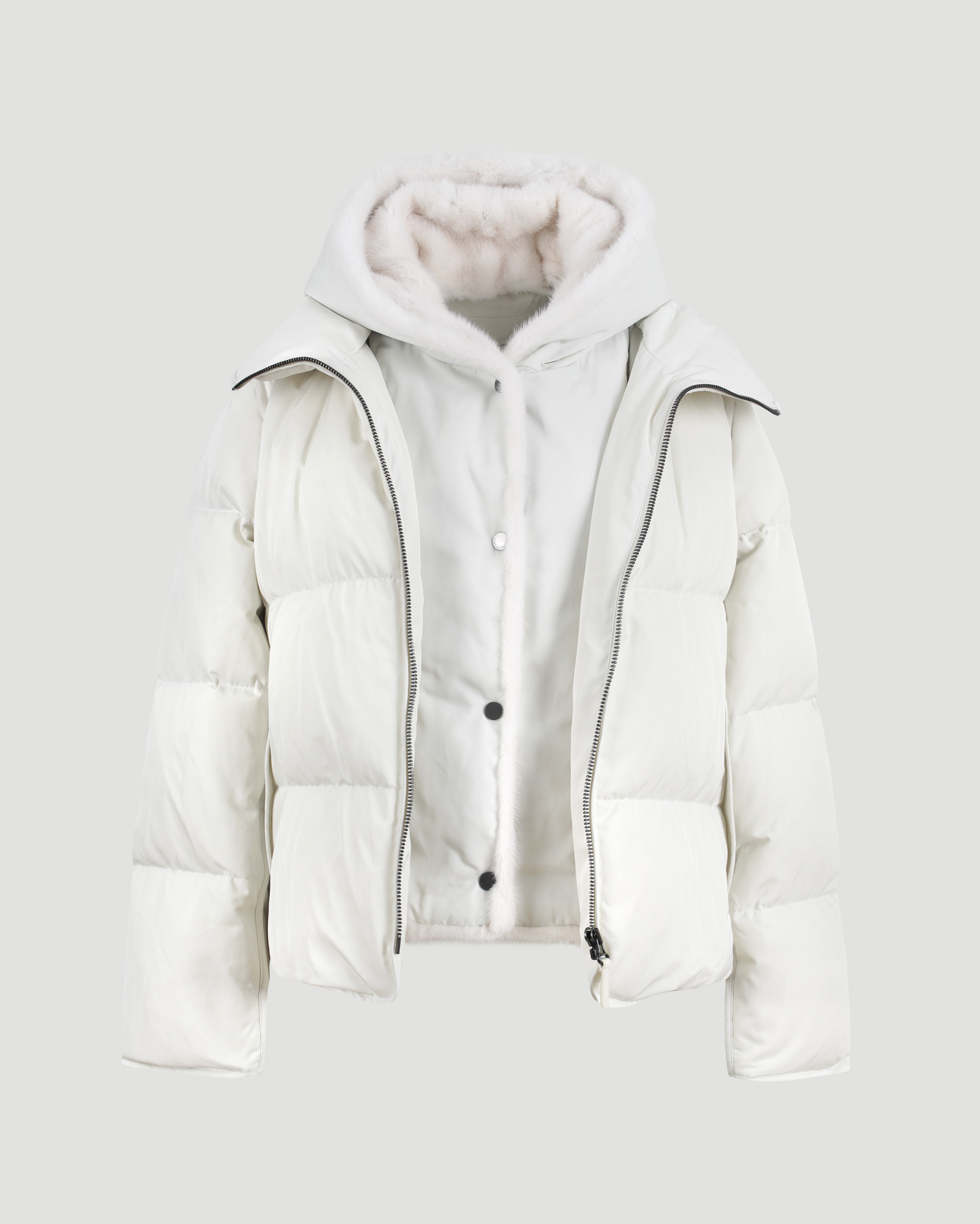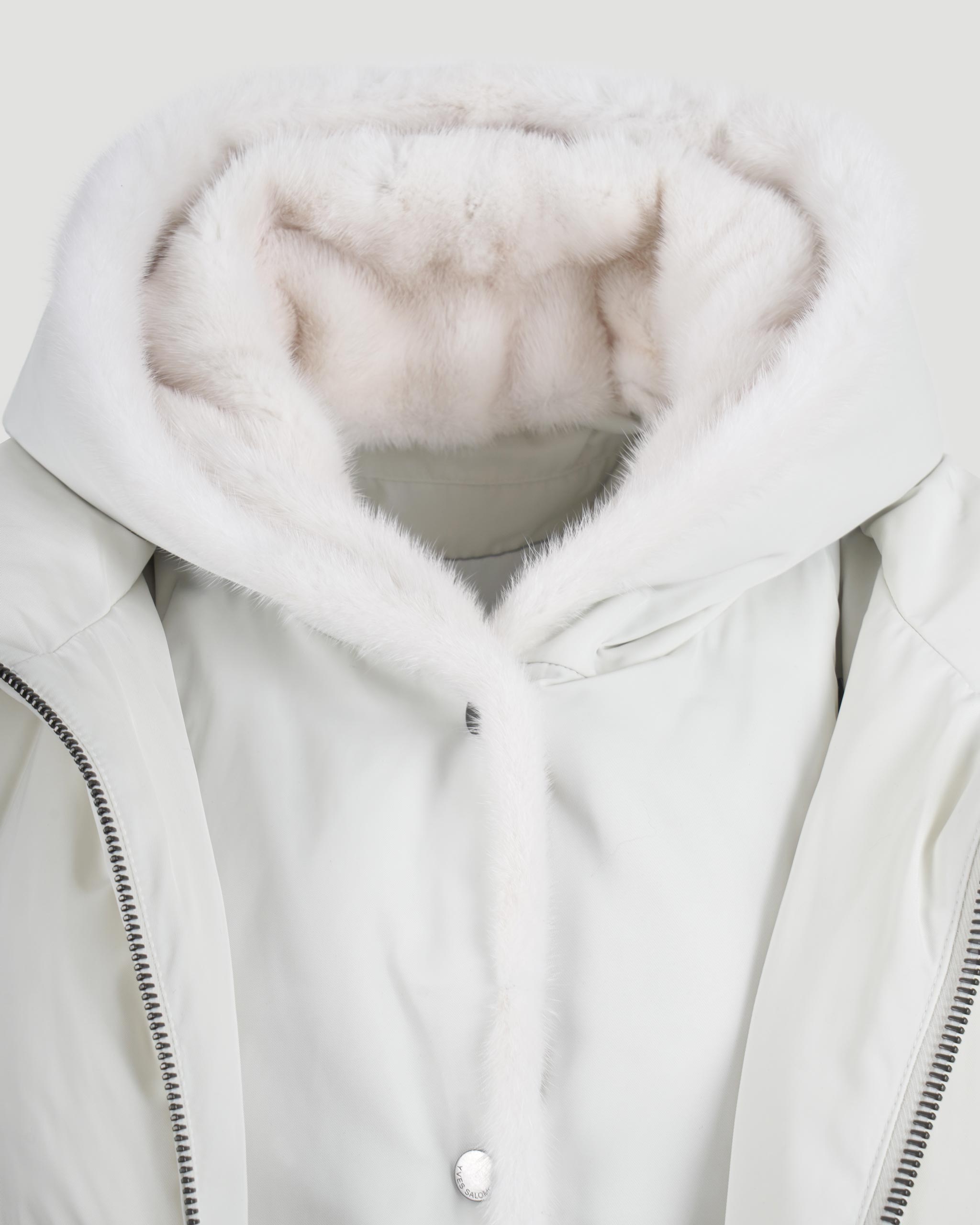 Iconic “A” Line Down Jacke With Mink Fur Hooded Bib