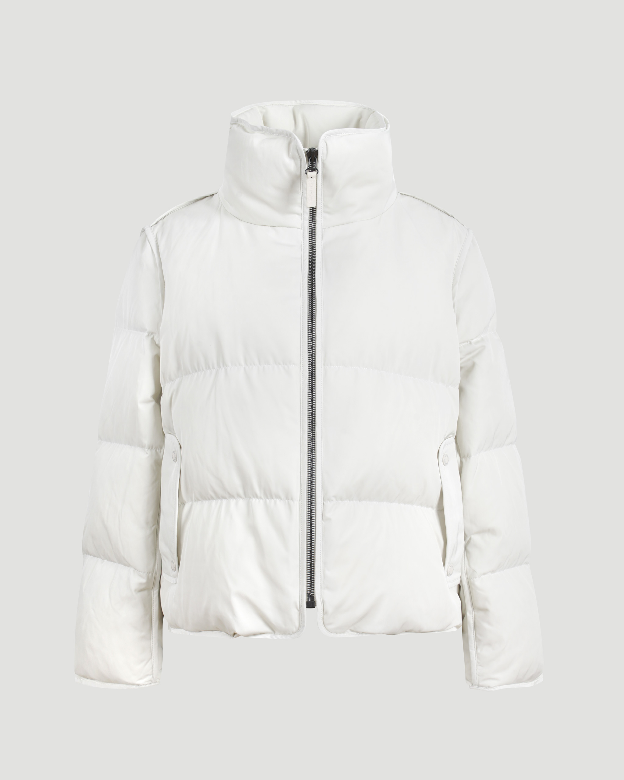 Stay warm in style with the YVES SALOMON “A” shape down jacket. Crafted from technical fabric and insulated with premium down and duck feathers, it ensures comfort and breathability even in temperatures down to -20°C. The jacket features a front zip closure, side zip slits, two flap pockets, and a removable hooded bib in long-haired mink, combining functionality with a casual, oversized silhouette.