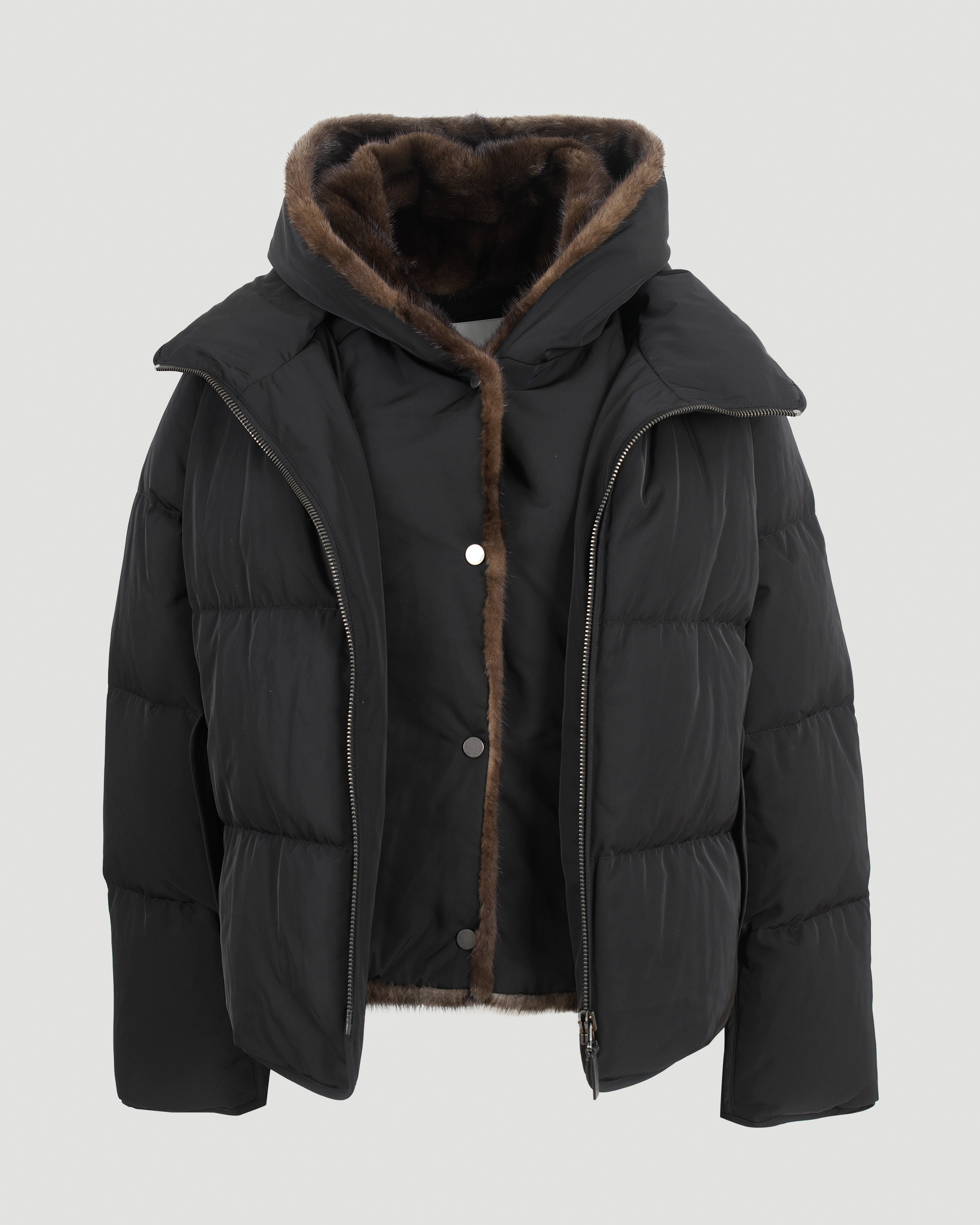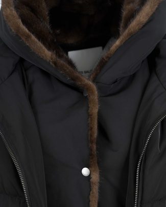 Iconic “A” Line Down Jacke With Mink Fur Hooded Bib