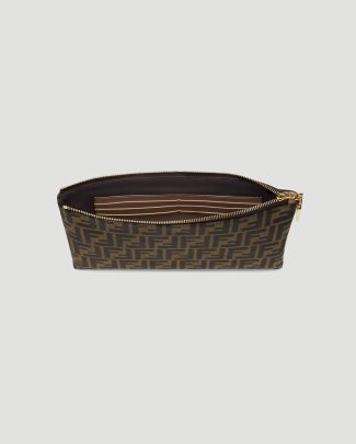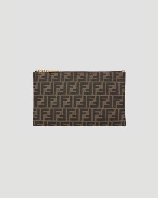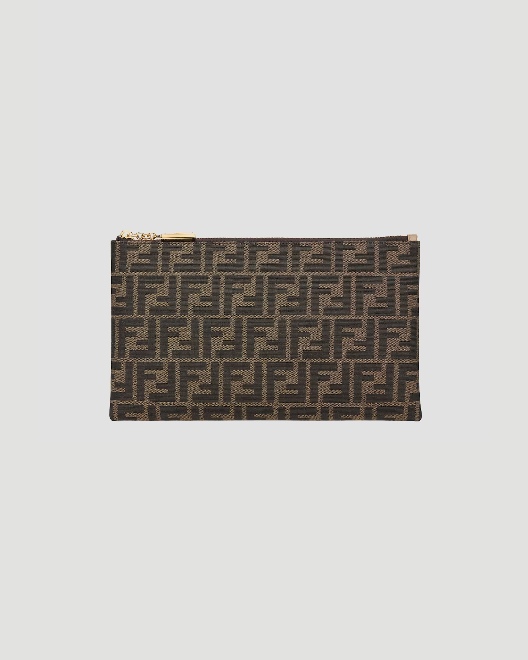 Medium Flat Baguette Pouch in Brown FF Jacquard