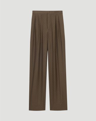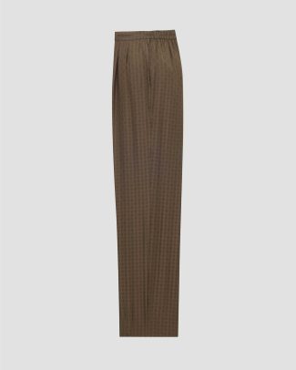 These Saint Laurent low-rise pants feature a straight leg with a single pleat and embroidery at the waistband. They are finished with a button closure, zip fly, and two concealed side pockets.
