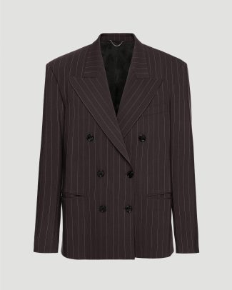 Pinstripe Double-Breasted Blazer in Dark Brown