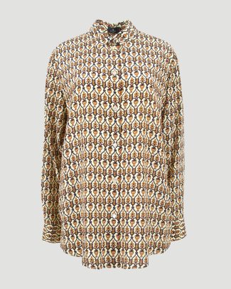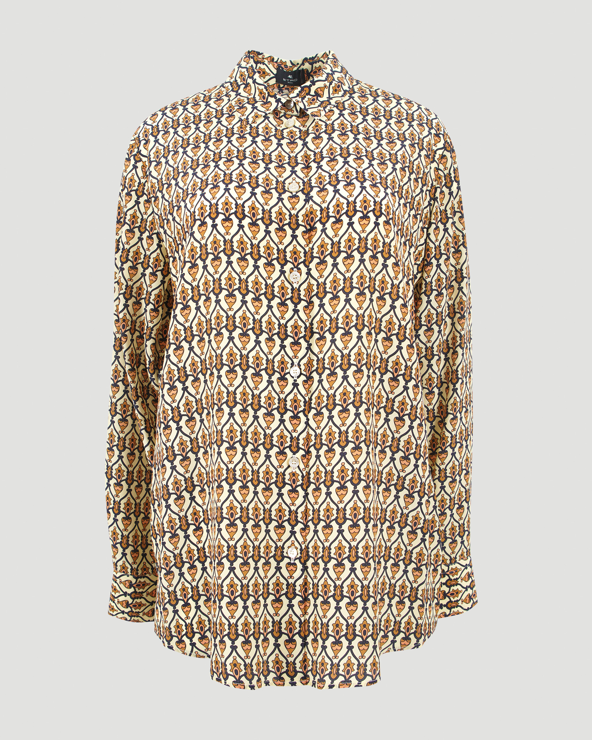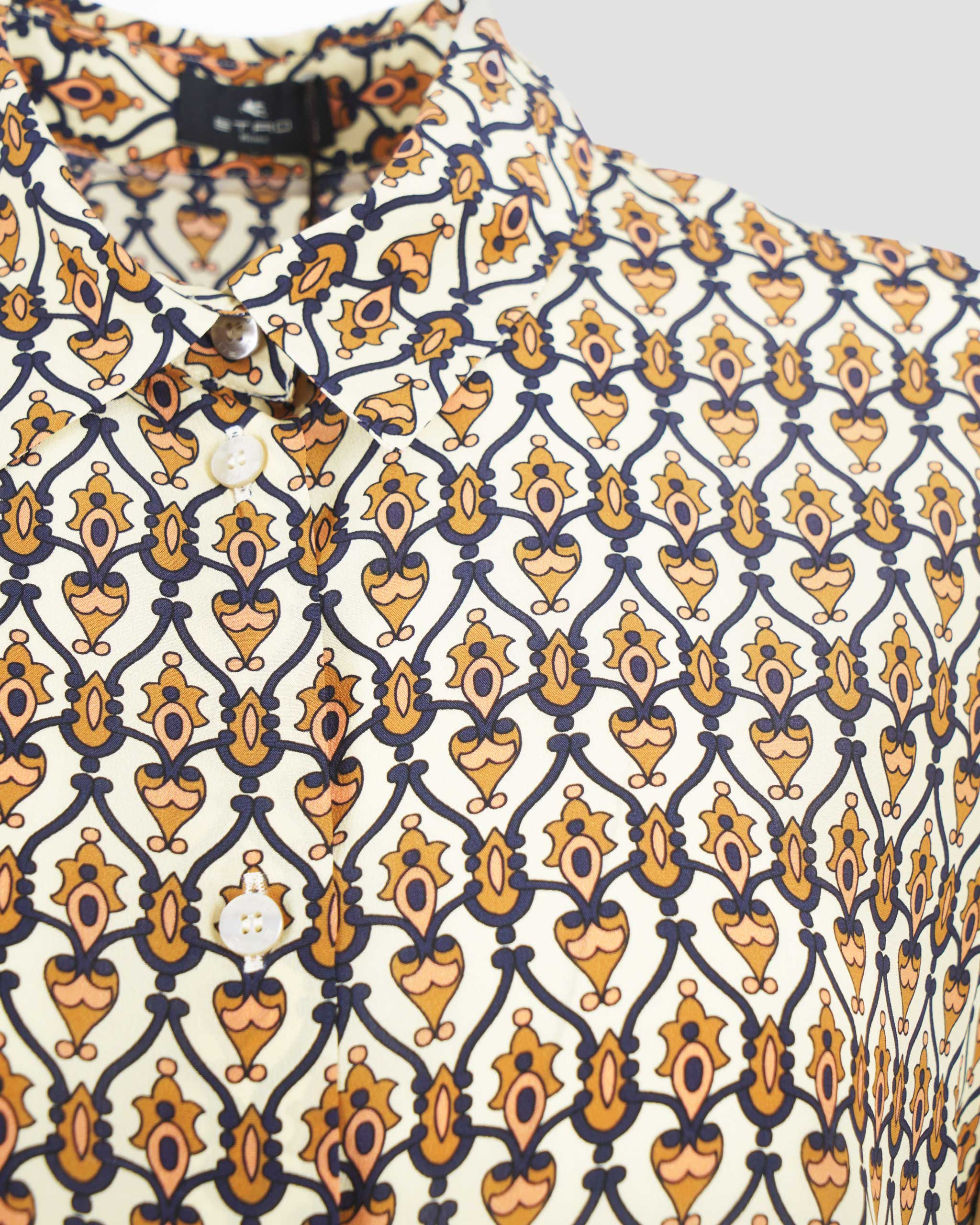 Straight-cut, relaxed-fit shirt by ETRO, crafted from pure silk crepe de chine with an all-over geometric-effect print. Features a boyfriend fit, classic collar, button closure, and one-button working cuffs.