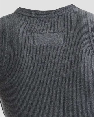 This racer-front tank top by Phoebe Philo is made from ribbed merino wool, offering a lightweight, semi-sheer finish. Cut for an elongated line, it features doubled rib trims and raised stitch detailing at the neck and shoulders, clean, fitted, and quietly precise.